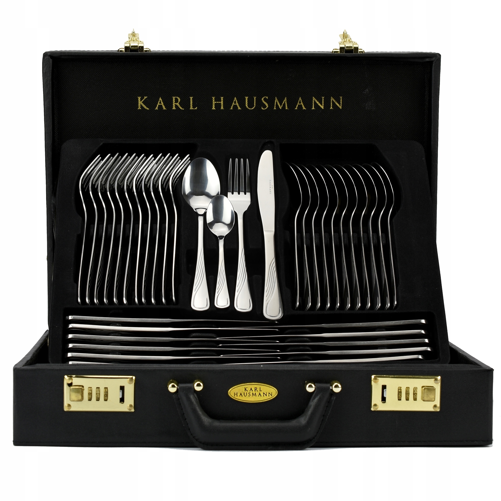 из высококачественнойнержавеющей стали. Набор столовых приборов на 12 персон сделает ваш стол необычайно стильным и элегантным. Все упаковано в элегантный чемодан из экологической кожи, который защищает столовые приборы от внешних факторов окружающей среды, что значительно облегчает хранение и транспортировку всех элементов набора.