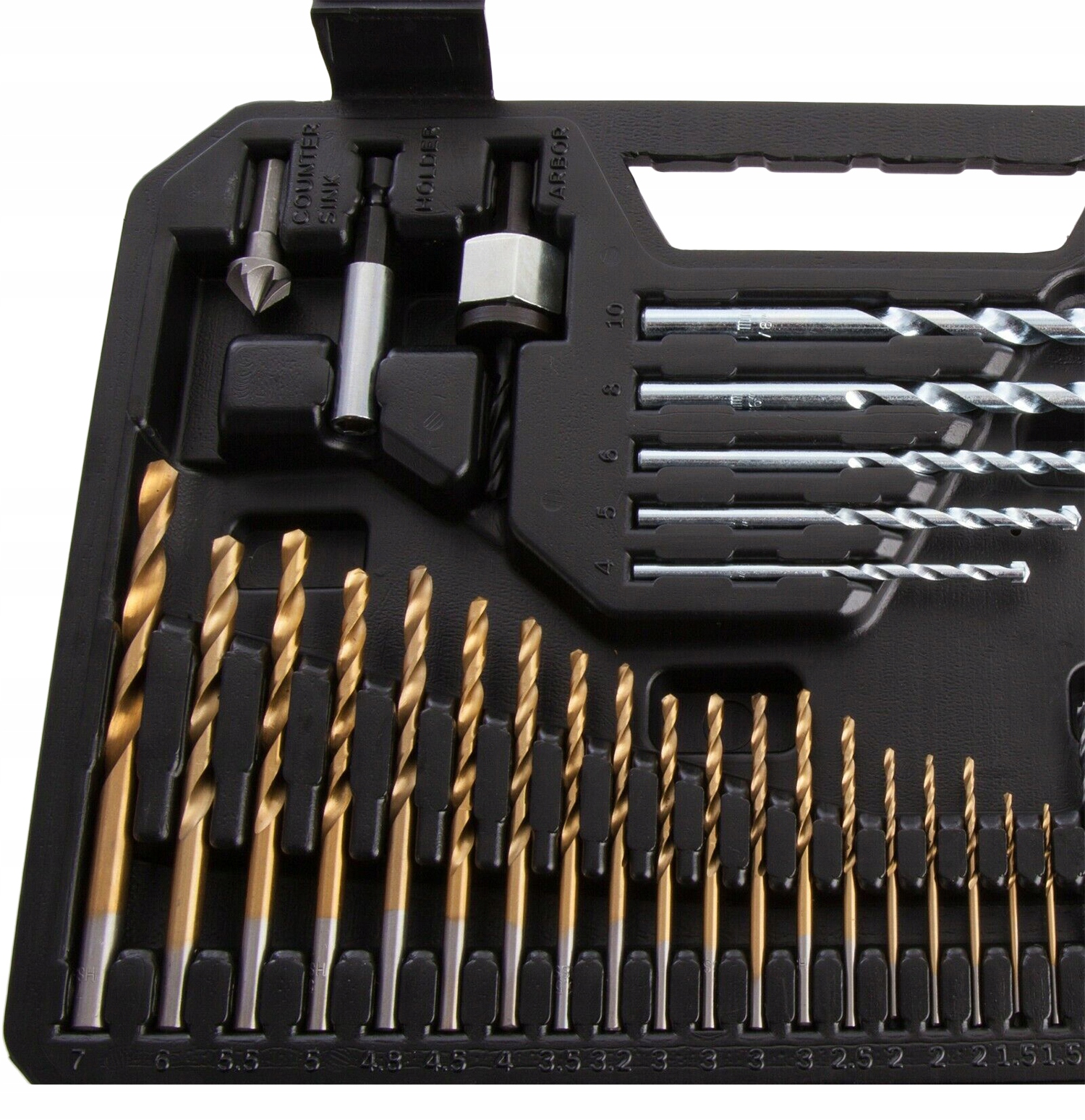 Этот комплексный набор сверл предназначен для сверления и крепления при выполнении работ по дереву, камню и металлу. Они идеально подходят практически для любого проекта, поэтому их стоит разместить в домашней мастерской как любителя DIY, так и профессионального работника. Сверла по металлу характеризуются чрезвычайно эффективным покрытием из нитрида титана, которое идеально подходит даже для экстремальных нагрузок. Они также характеризуются высокой прочностью и длительным сроком службы. В наборе целых 103 предмета, включая биты с насадками, шестигранный ключ и торцевые ключи. Все помещено в практичный чемодан с четким расположением содержимого. Простое и безопасное снятие отдельных деталей принадлежностей и их более легкий выбор возможны благодаря пиктограммам с маркировкой применения.