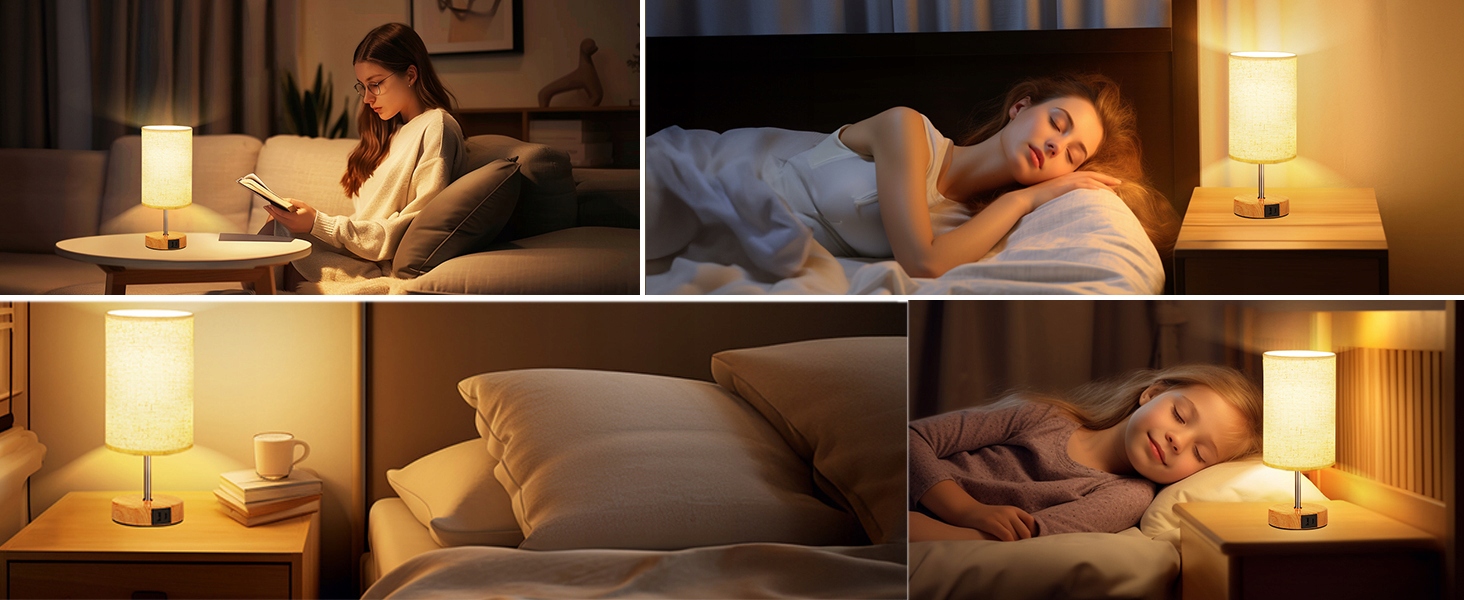 Набор прикроватных ламп - набор светильников спальни с 3 уровнями затемнения, с портами USB C+A