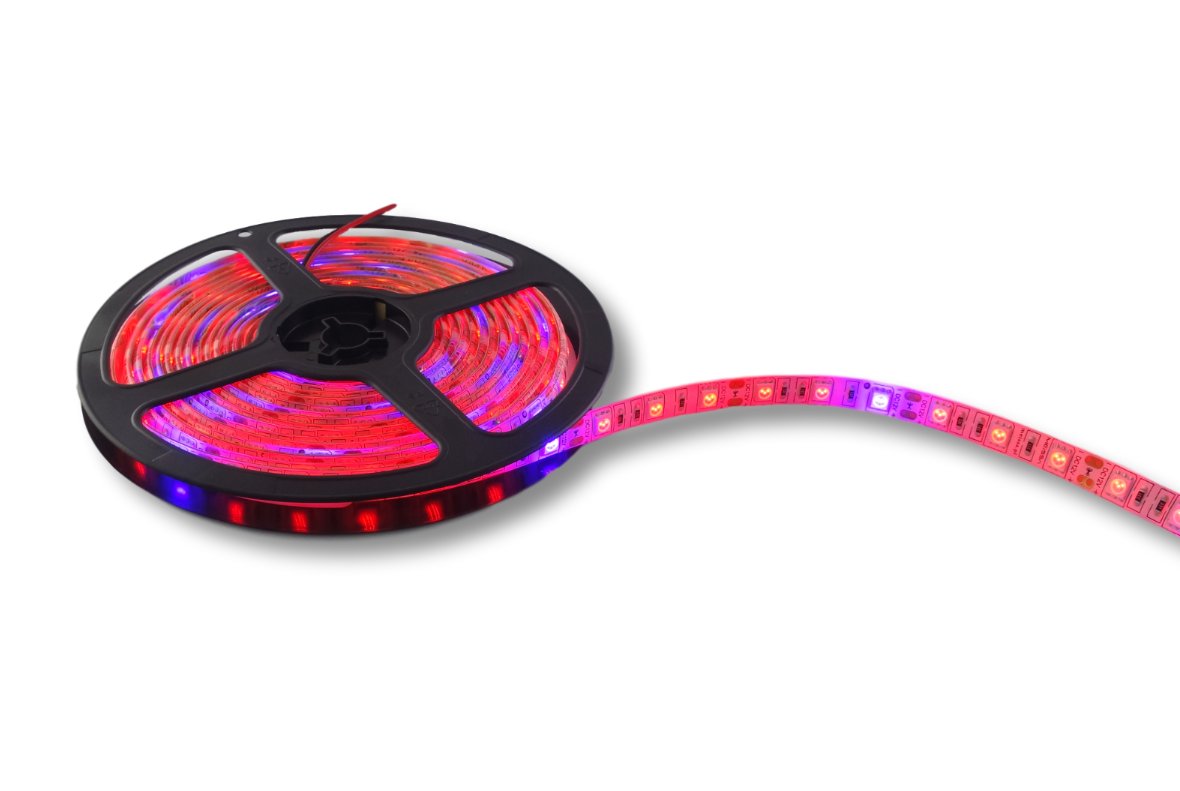 Лента LED GROW 5050 имеет до 300 светодиодов Светодиодов на 5 метров ленты. Такая высокая плотность обеспечивает высокую мощность и высокую яркость. Лента содержит красные и синие диоды, расположенные в пропорциях 5:1, что делает ее идеальной для выращивания всех типов растений.
