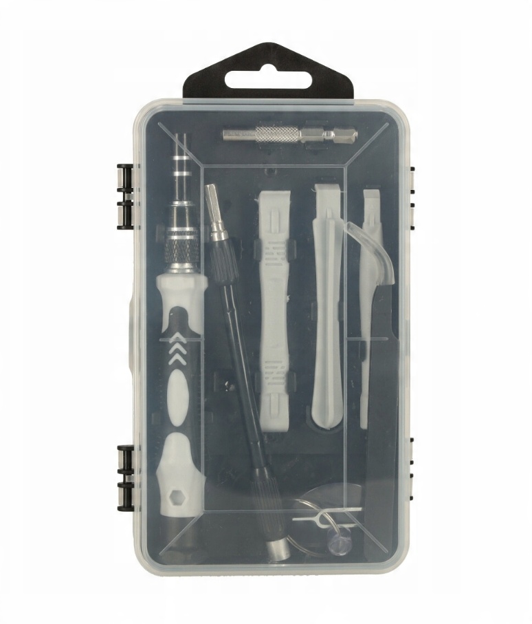 Помимо отвертки и полного набора бит в набор входят и другие чрезвычайно полезные аксессуары, такие как: удлинитель отвертки, пинцет, присоска для снятия стекла, открывалки корпуса, ключ для извлечения SIM-карт и намагничитель.< /п>
