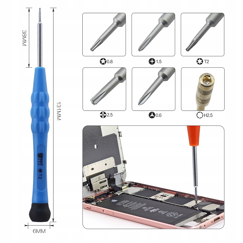 - 1x pentalobe p2 0,8 мм отвертка (телефоны iPhone)