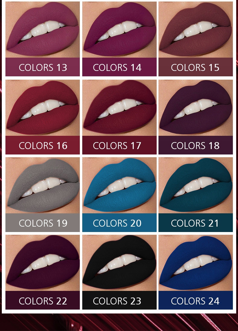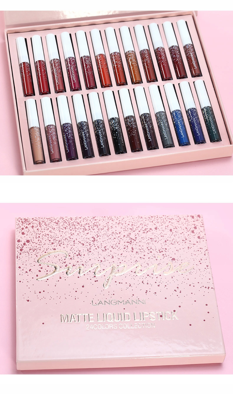 Набор из 24 кусков матовых помад в жидкости, длинный, водонепроницаемый
