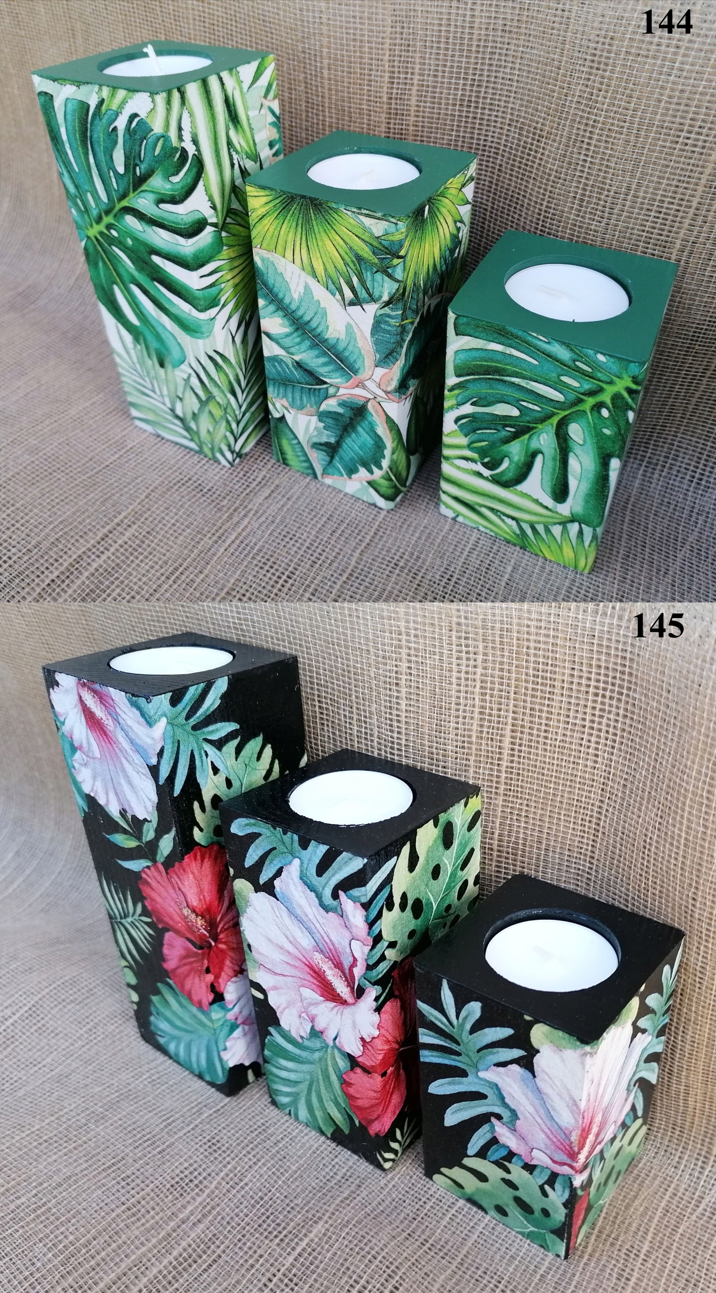 Набор из 3 подсвечников черный с цветами подарок