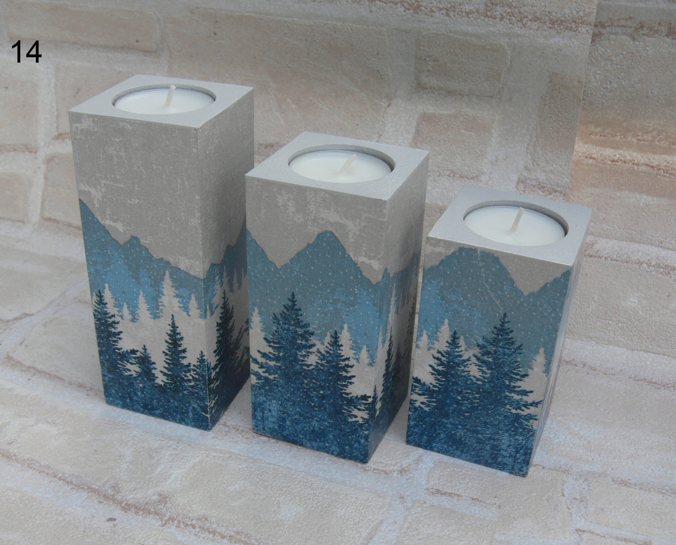 Набор из 3-х деревянных подсвечников, выполненных в технике ручного декупажа, расписанных акриловыми красками,