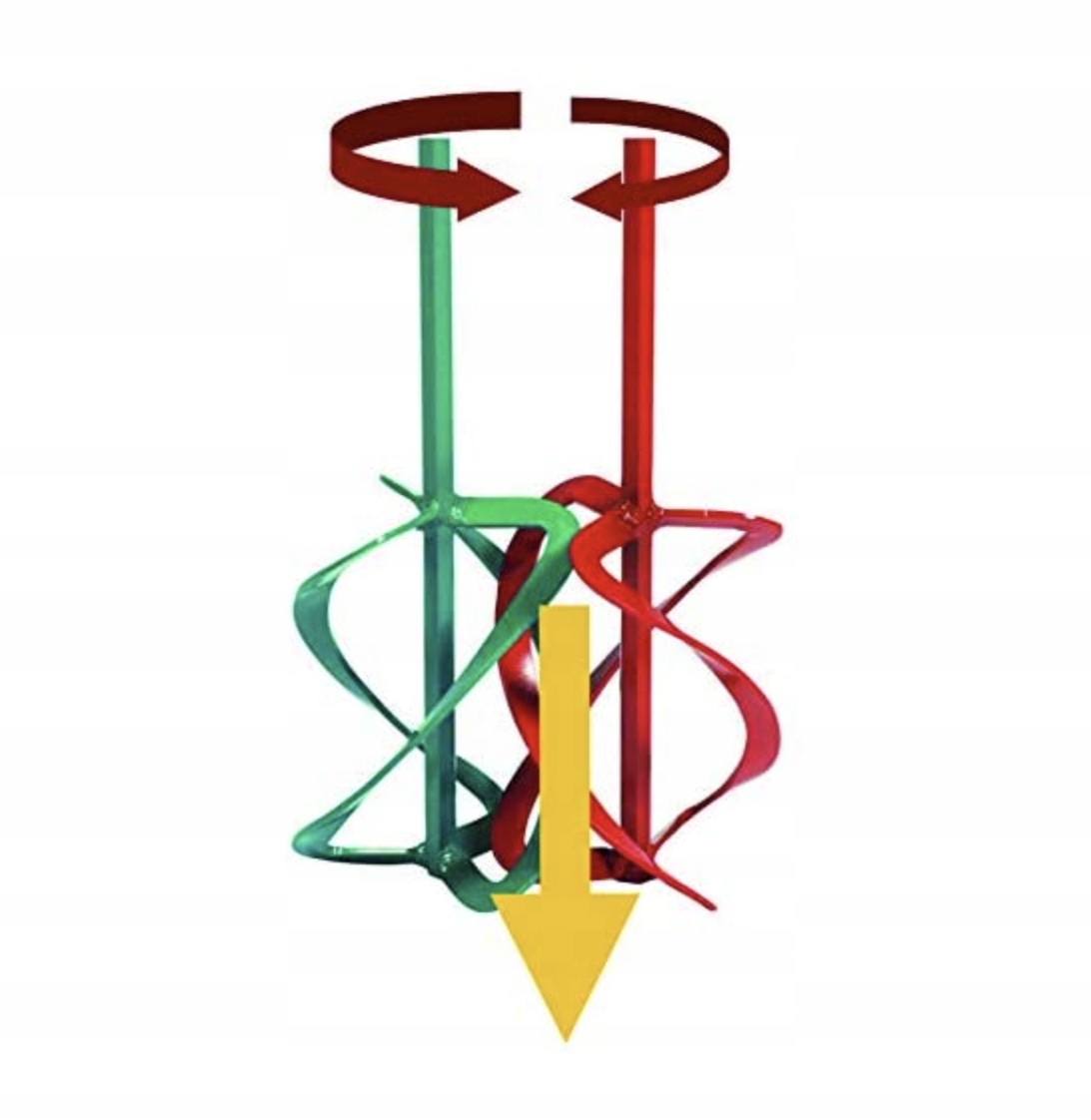 монтируется в цвете в соответствии с ручками, заставляя направление скольжения массы снизу вверх - в идеале для толстых и пластиковых материалов. Это четкая маркировка цветов), которая приведет к тому, что материал сведет материал сверху к дне ведра - в идеале для жидкости и полуклинальных масс.