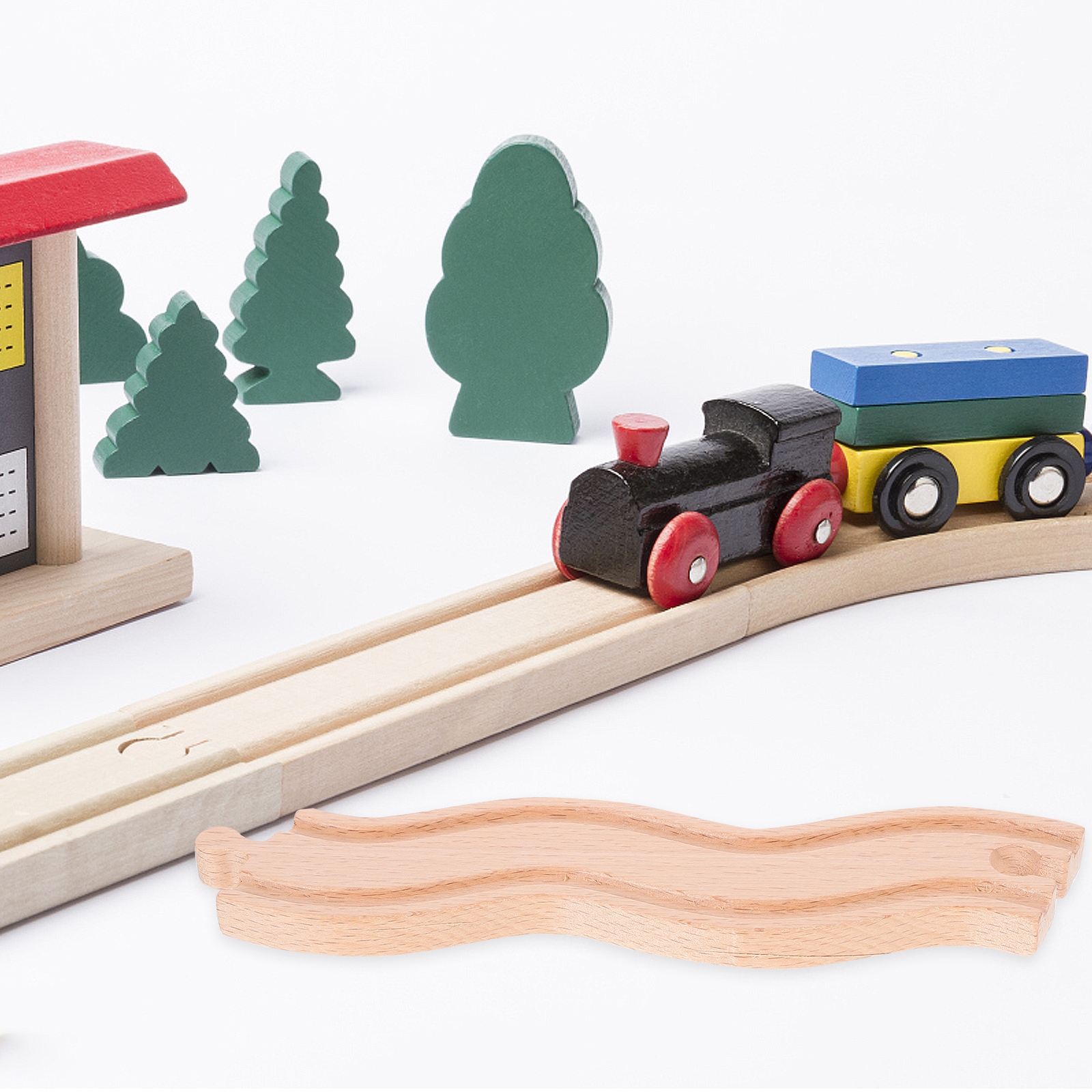 ✅ Эта деревянная игрушка развивает ловкость и мелкую моторику, пока дети собирают конструкции железнодорожных путей.