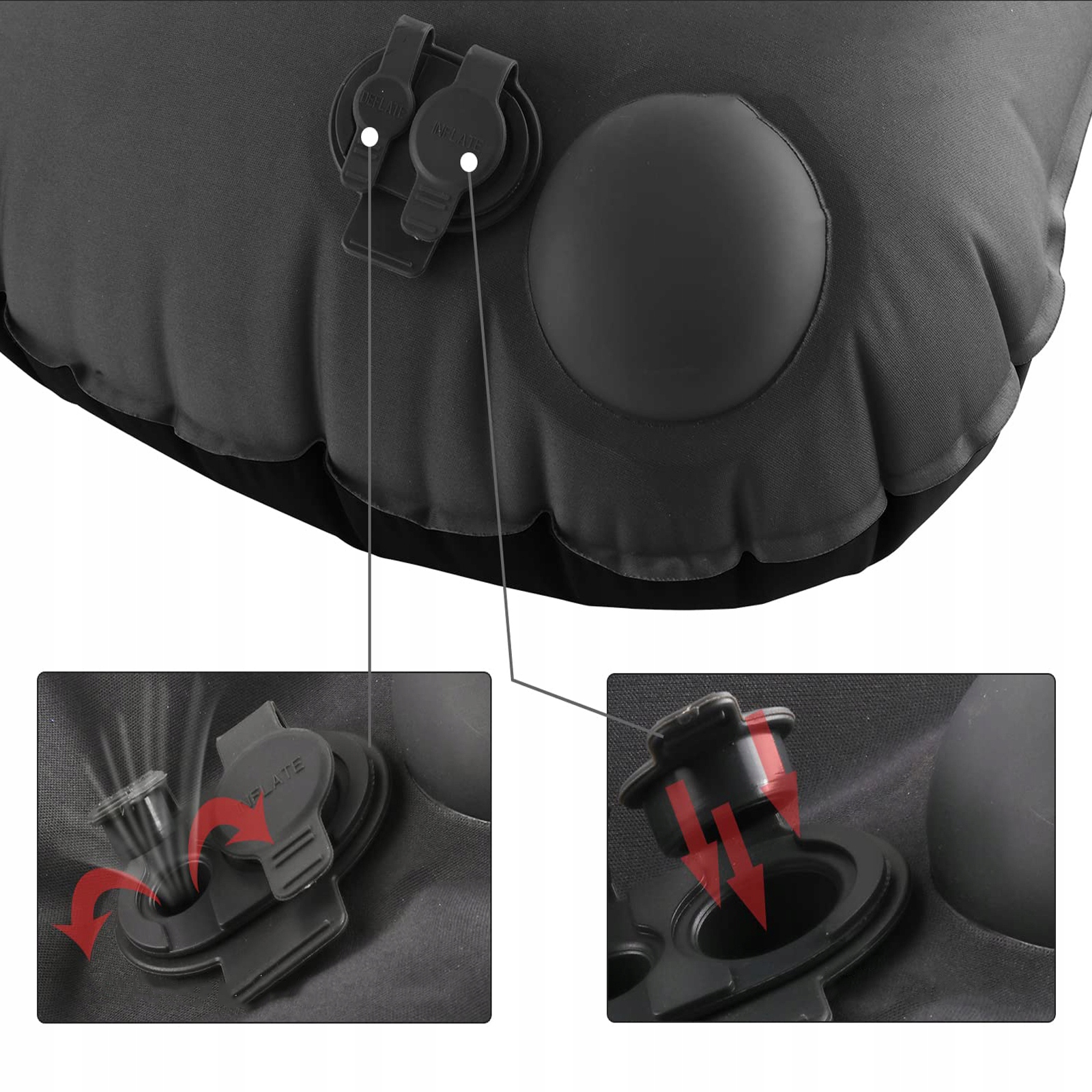 - Подушку можно быстро надуть всего за 3–5 вдохов и сдуть быстрее за секунды, нажав клапан выдоха.