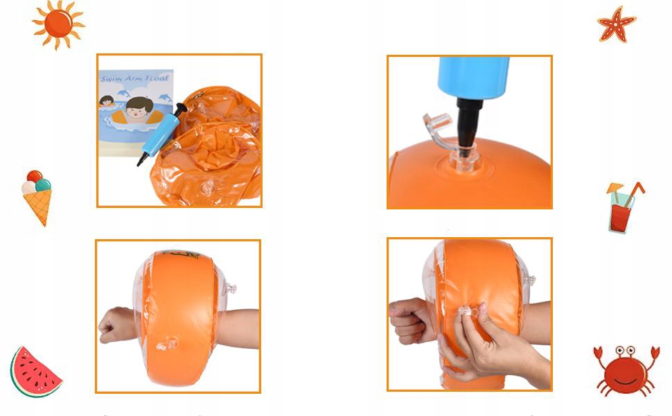 плавающие ленты изготовлены из высококачественного водонепроницаемого и прочного ПВХ-материала, нетоксичного, очень прочного, легко надуваться и сдуваться. Многоразовый, идеальный инструмент для обучения плаванию. Благоприятный для кожи материал обеспечивает максимальный комфорт и предотвращает появление ссадин на коже. Ваш ребенок получит больше удовольствия от купания.