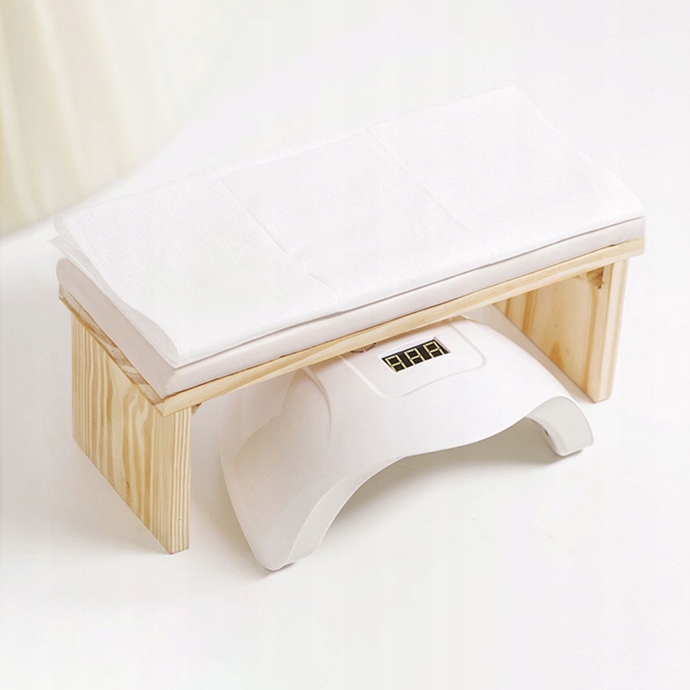 Под деревянной подставкой для рук достаточно места, где можно разместить инструмент для фототерапии ногтей.