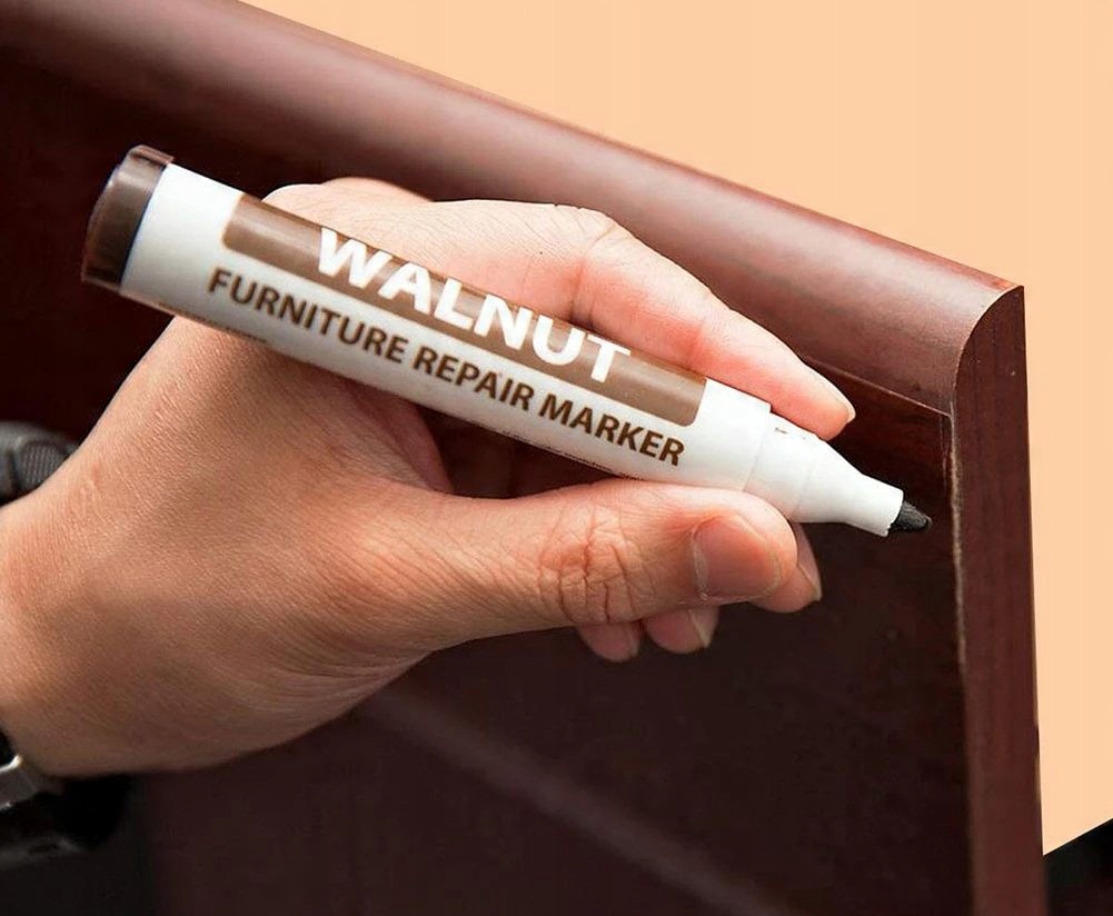 - маркеры. б> используются в местах, подверженных истиранию – углах мебели, ножках столов и стульев. Пигмент, содержащийся в маркере, позволяет устранить видимость сколов.