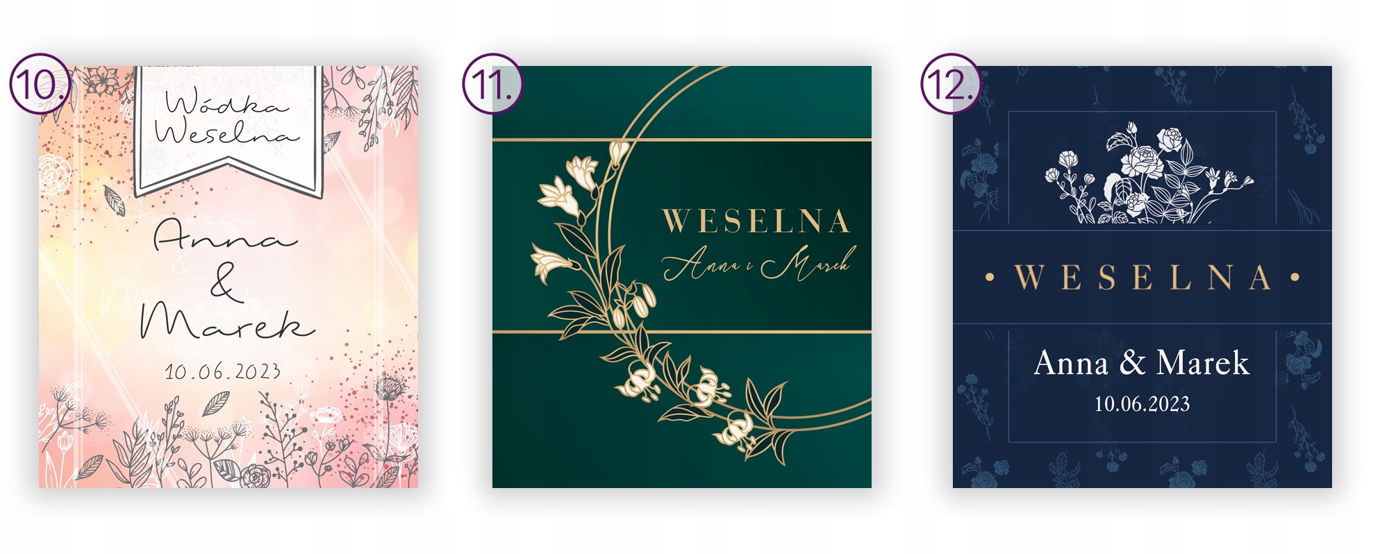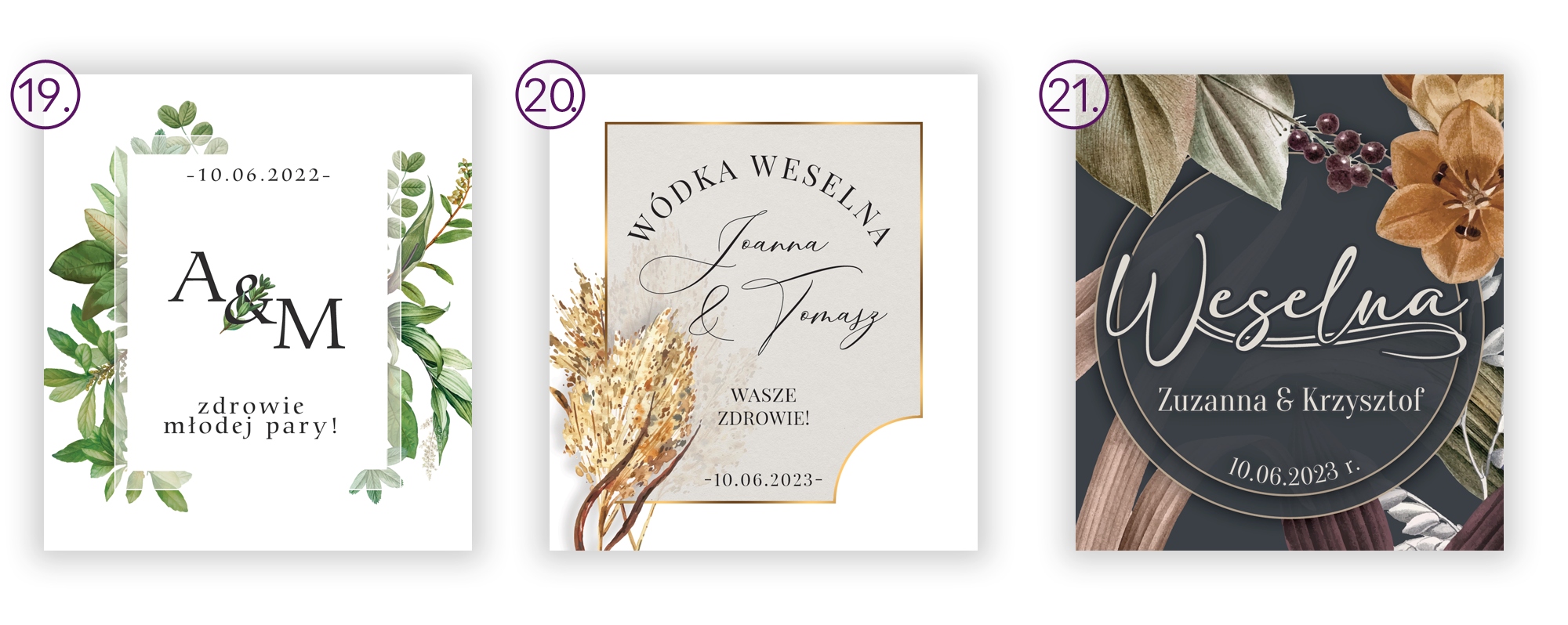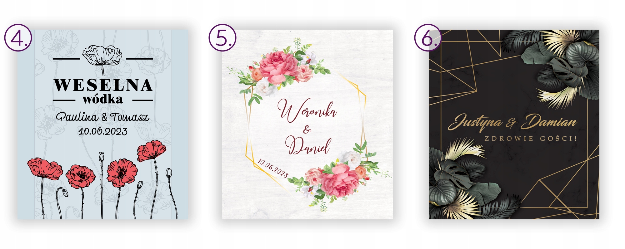 Ниже доступны образцы свадебных этикеток для водки с их номерами.