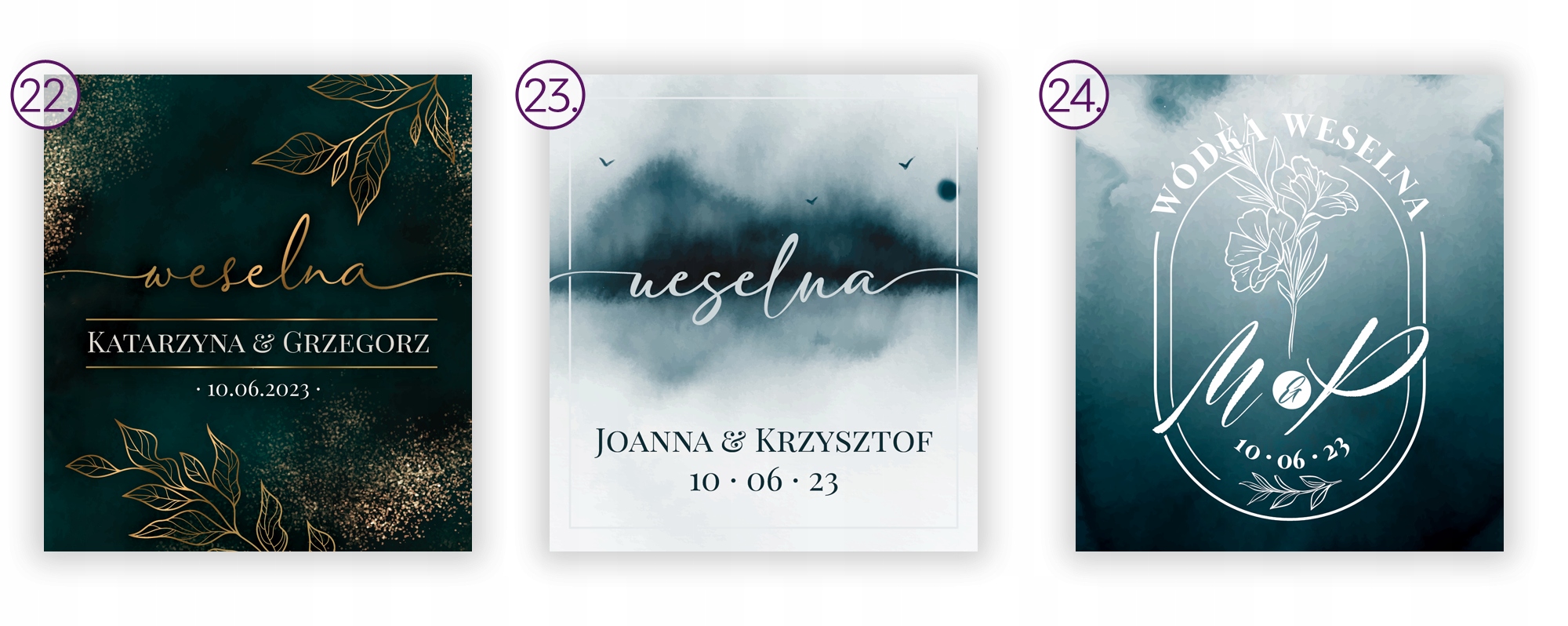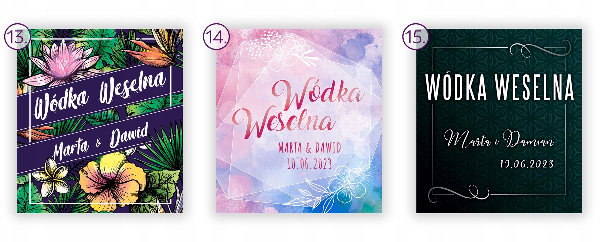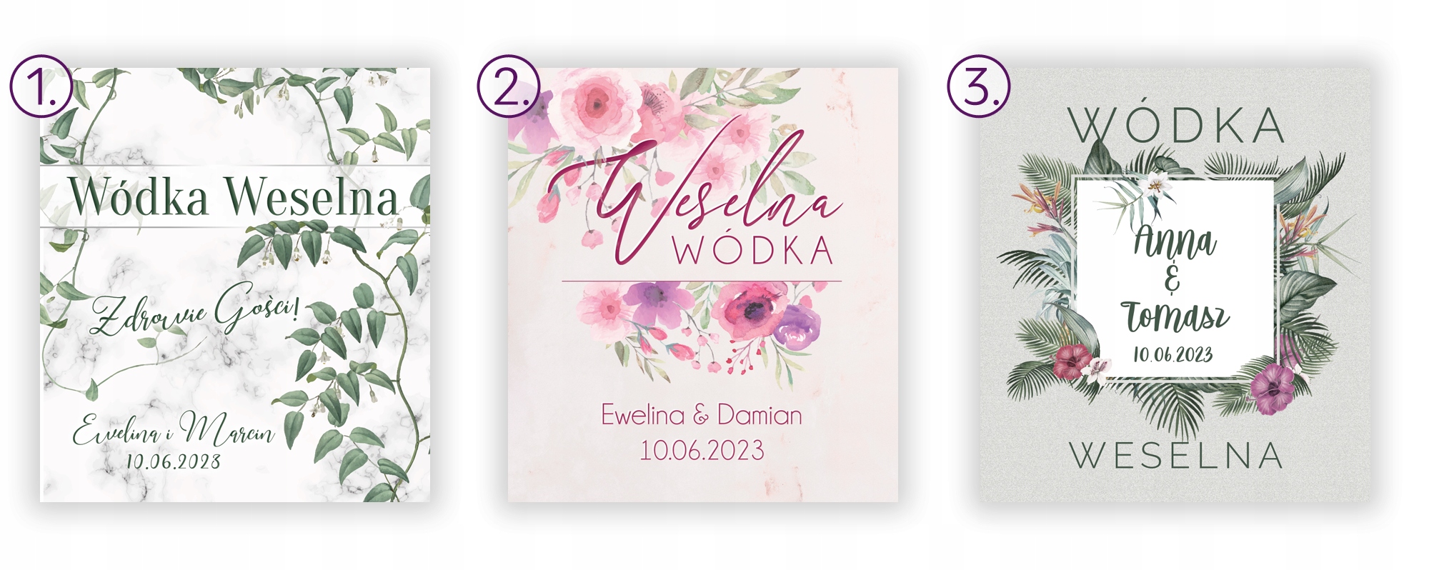 Ниже доступны образцы свадебных этикеток для водки с их номерами.