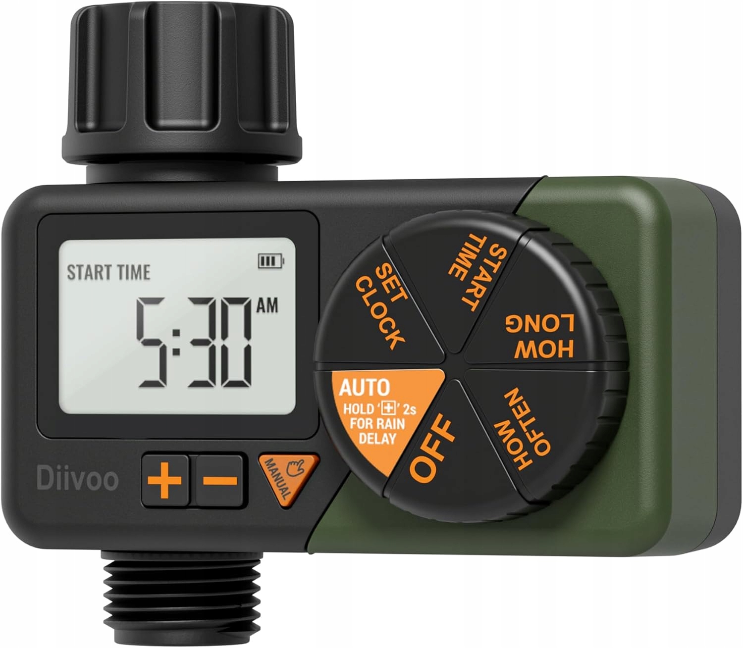 ⋆ время и периодическое орошение: Таймер воды diivoo позволяет орошать в определенные дни. Вы можете установить время начала, время орошения (от 1 минуты до 3 часов 59 минут) и частоту полива (с каждых 12 часов, включая только дни или только нечетные дни). Timer Diivoo Sprinkler обеспечивает точный контроль над переменными потребностями ирригации.