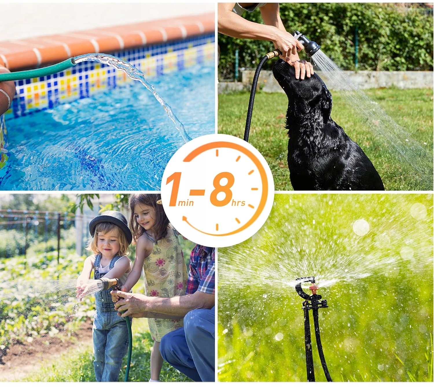 ⋆ Ручной режим водоснабжения: Таймер змеи позволяет вам вручную воды от 1 минуты до 8 часов без прерывания текущей программы полива. Идеально подходит для использования в садах, цветах, газонах, патио, теплицах, фонтанах, фермах и других. Оборудование имеет водонепроницаемый и протекающий рейтинг IP54, благодаря которому он идеально подходит для торговых контроллеров, систем парниковых туманов, заполнения бассейнов, воды для домашних животных и т. Д. Он имеет 360 -градусный поворотный wolotowa, который может быть заправлен для размещения любых стандартных 3x4 "" или 1x2 "садового шланга.
