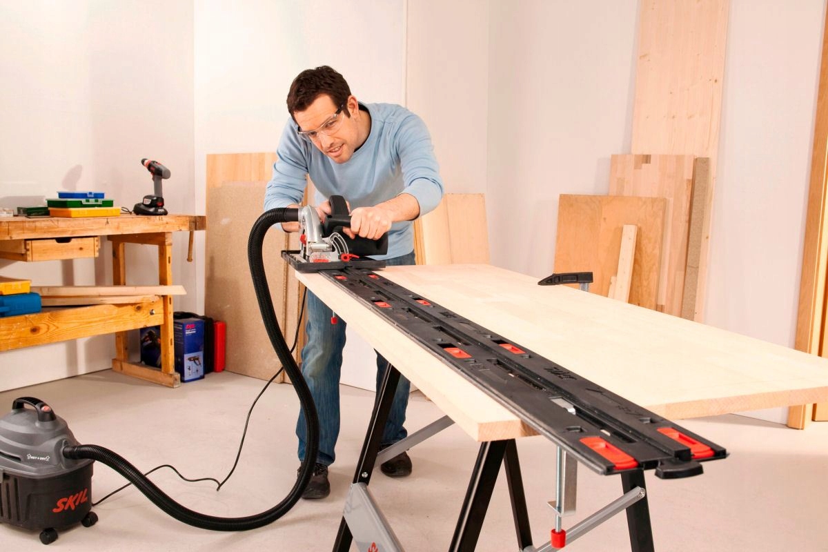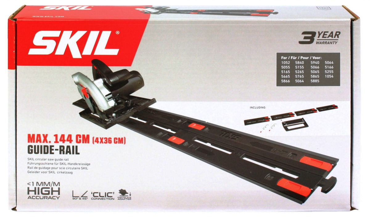 Направляющая SKIL длиной 1400 мм идеально подходит для резки коротких и длинных элементов (например, мебельного щита, столешниц, дверей и т. д.)