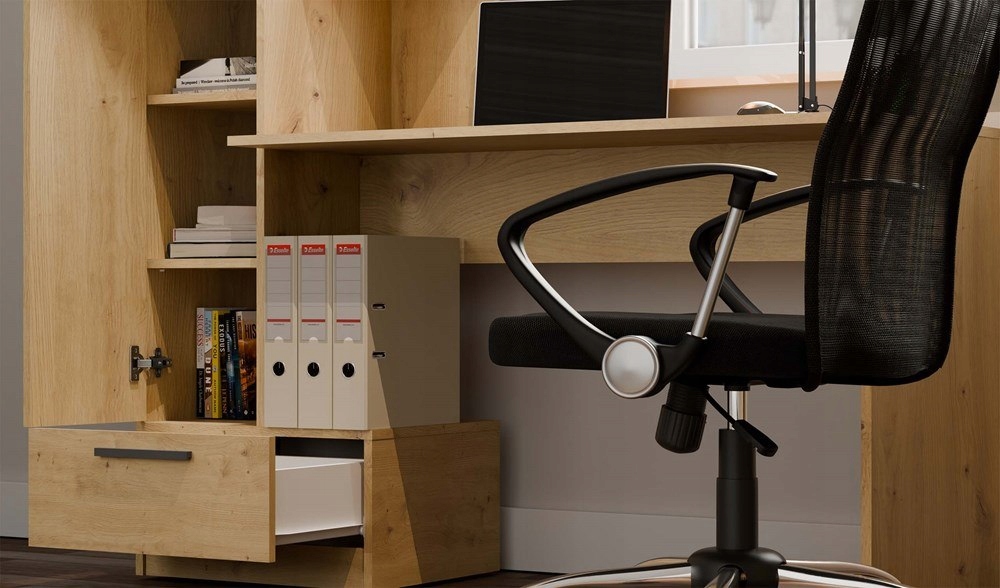 Письменный стол COSMO — практичное и компактное решение для людей, ищущих удобное место для работы или учебы, обеспечивающее еще и функциональное хранение. Предмет мебели прекрасно подойдет для молодежной комнаты, домашнего кабинета или студии.