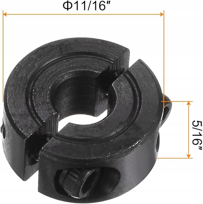 - Размер - круглый воротник с круглым отверстием имеет внешний диаметр 11/16 дюймов, шириной 5/16 дюймов (толщина) для стержня 1/4 дюйма. Двойной раздельный воротник обеспечивает сильное и стабильное удержание вала и предотвращает скольжение или перемещение элементов без повреждения вала.