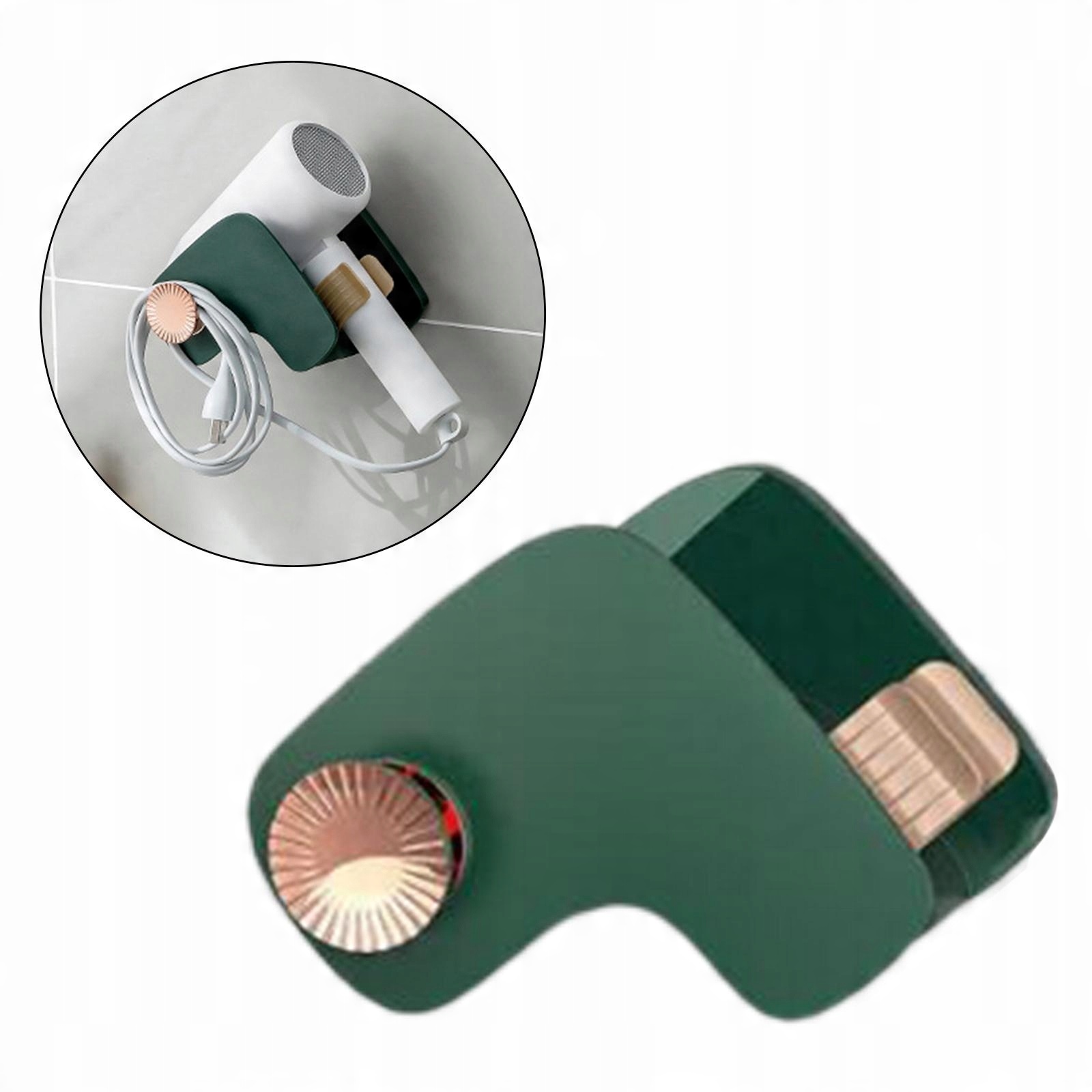 Настінний тримач для фена, вологостійкий, без свердління, темно-зелений