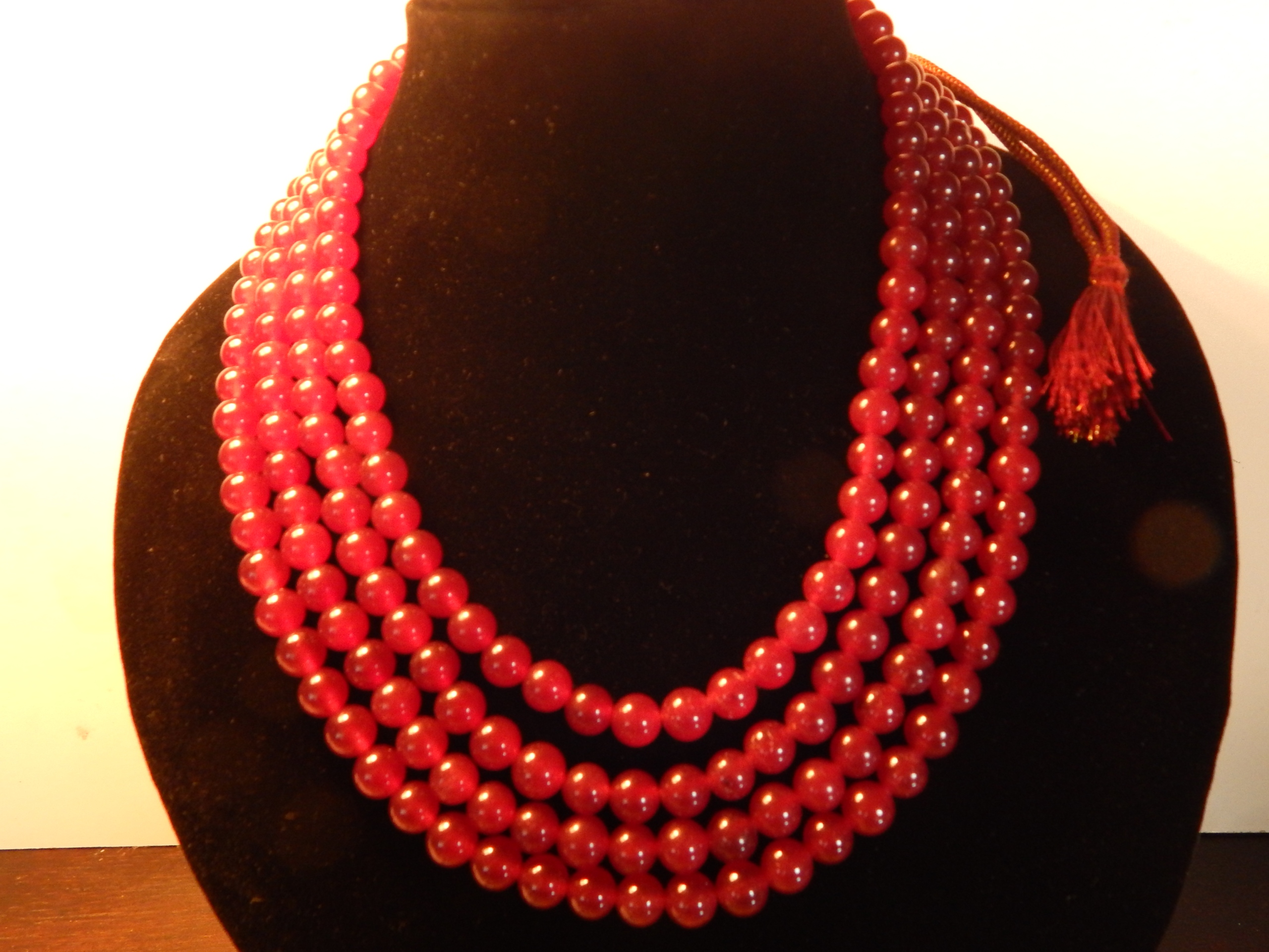 Naszyjnik kamienie Rubiny 850 ct dł 45+90 cm 4 rzędowe