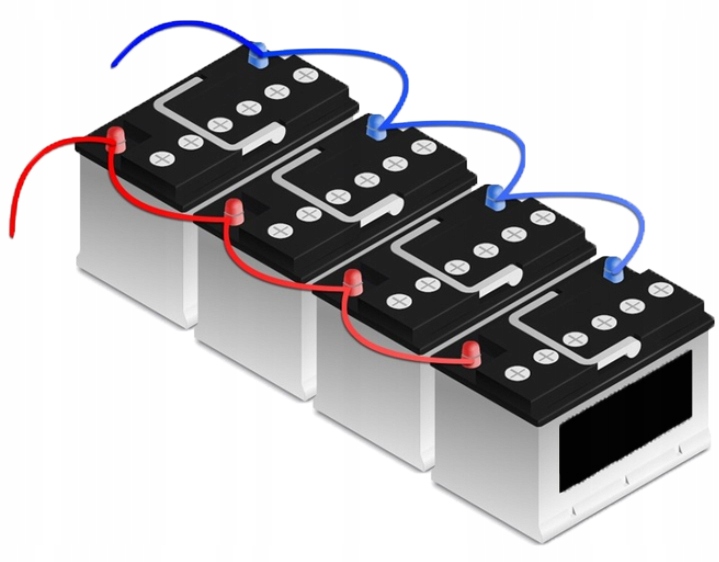 Последовательное соединение аккумуляторов позволяет получить более высокое напряжение при сохранении той же емкости. Соединив последовательно несколько аккумуляторов, в зависимости от их количества, получим сумму их напряжений. Например: