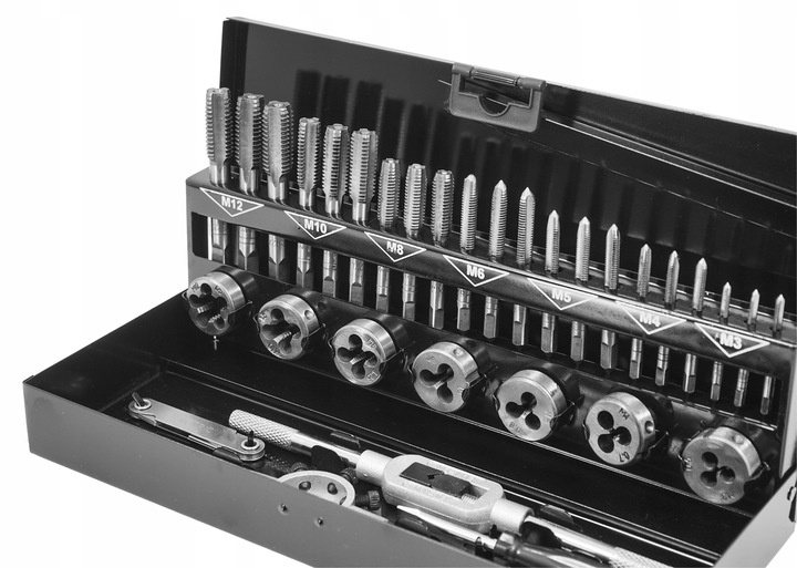 ⏩ повествования и потоки - набор включает в себя семь наиболее используемых размеров (M3, M4, M5, M6, M8, M10, M12). благодаря этому, набор можно использовать для широкого спектра работы, от незначительного ремонта до более продвинутых промышленных задач.