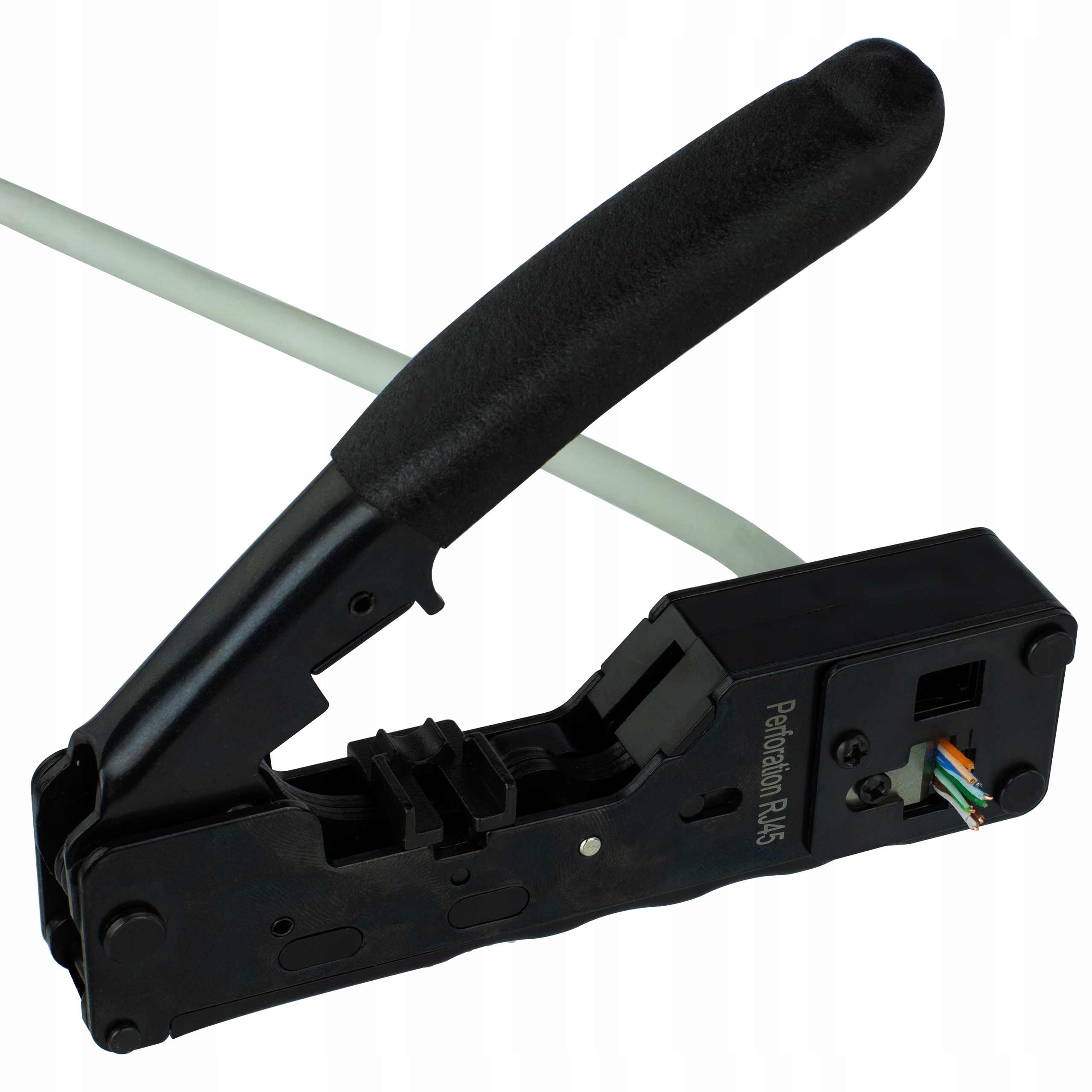 Обжимка механизм обеспечивает равномерное нажатие всех контактов. Дополнительно позволяет зажимать экран вилок RJ45 на покрытии витой пары.