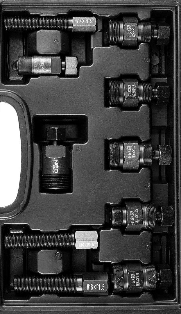 Съемники маховика, набор из 10 штук 10-584 фирмы NEO, предназначены для отделения маховика от конуса коленчатого вала. Подходит для большинства мотоциклов. Съемники марки NEO рекомендуются профессионалам и автолюбителям.