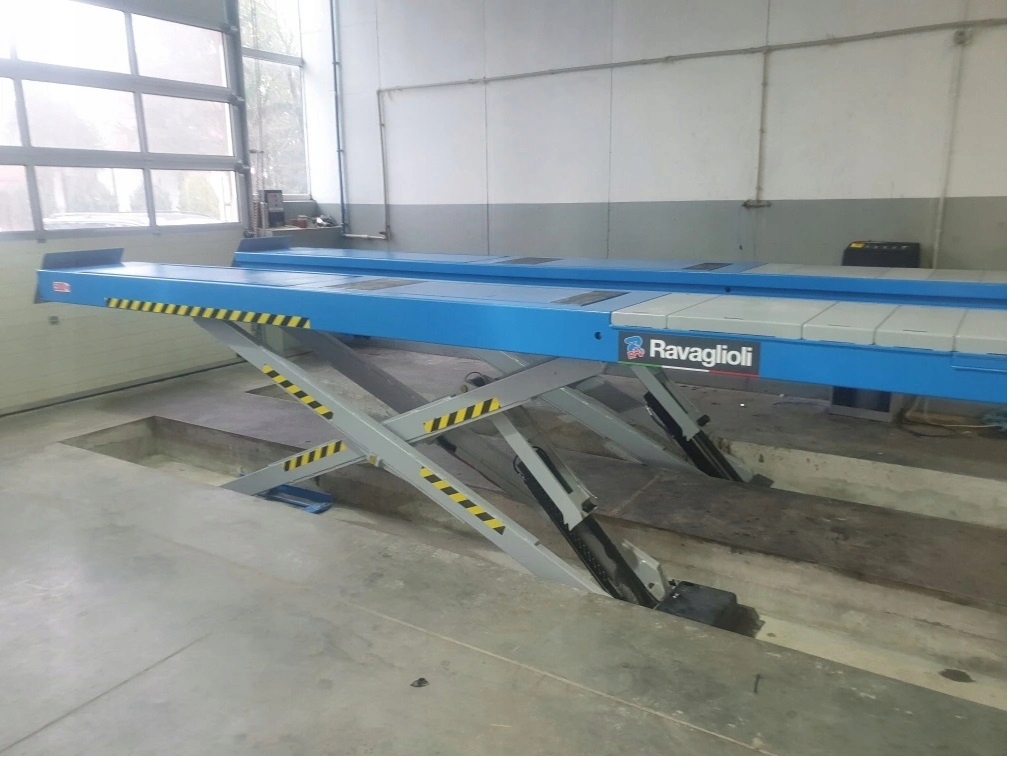 Итальянский ножничный подъемник RAVAGLIOLI диагностический длинный для автобусов со вторым ножничным подъемником грузоподъемностью до 5 тонн