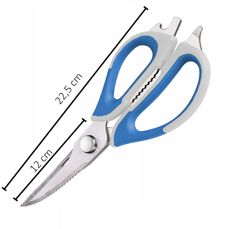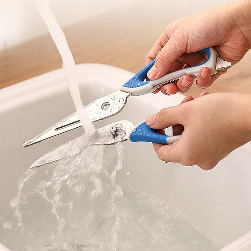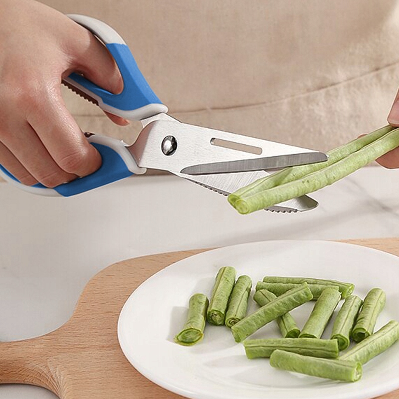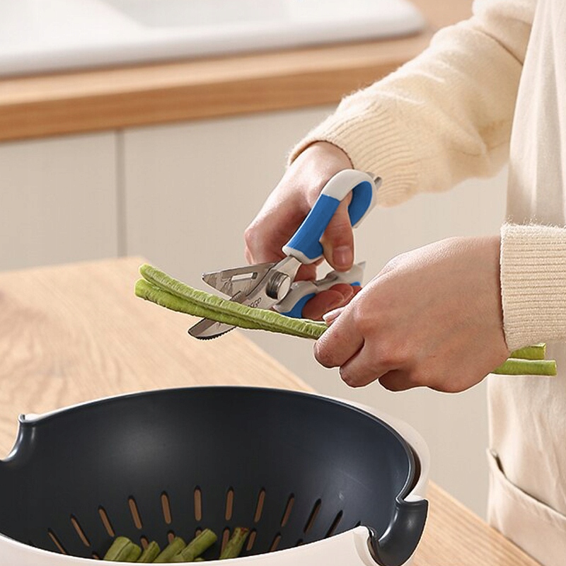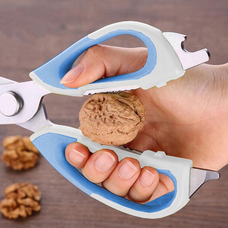 Многофункциональные ножницы – идеальный инструмент как для любителей, так и для профессионалов в кулинарии. Они будут хорошо работать в вашем доме благодаря своей функциональности. У них нескользящие ручки, поэтому они не выпадут из рук во время резки. Инструмент можно использовать для нарезки мяса, фруктов, овощей, открывания бутылок или банок, чистки рыбы, раскалывания орехов.