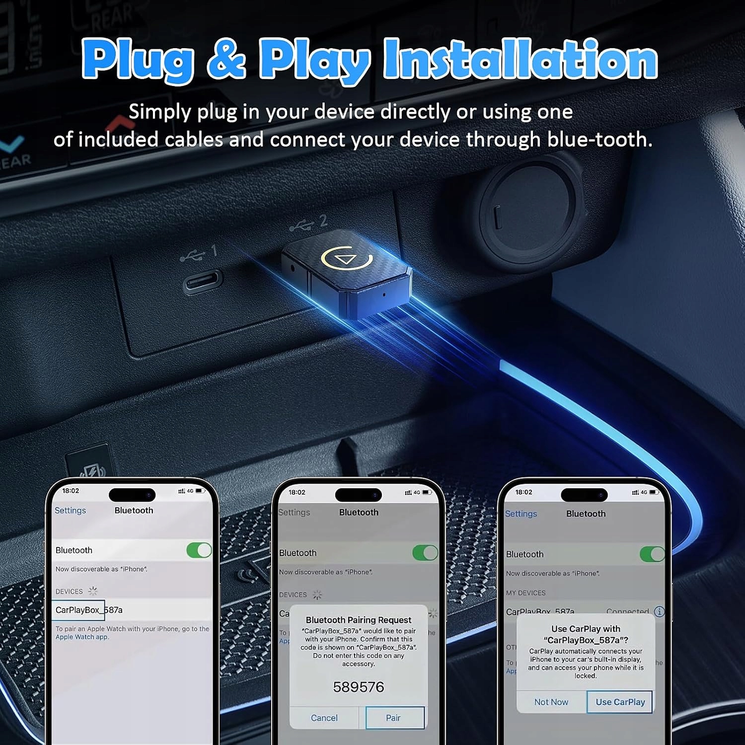 ✨ ** Беспроводной адаптер euakee 2in1 - Carplay и Android Auto Кабели! Благодаря технологии Plug and Play, установка быстрая и простая. Адаптер характеризуется компактной конструкцией и отделкой углеродного волокна.