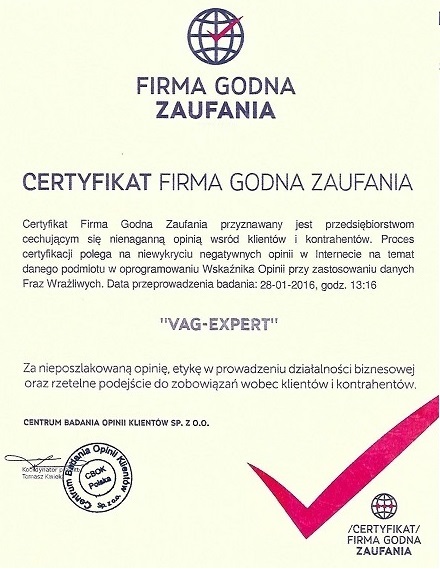 ПОКУПАЯ В VAG-EXPERT ВЫ МОЖЕТЕ БЫТЬ УВЕРЕНЫ, ЧТО ПОКУПАЕТЕ У НАДЕЖНОЙ КОМПАНИИ, РАБОТАЮЩЕЙ НА РЫНКЕ С 1995 ГОДА