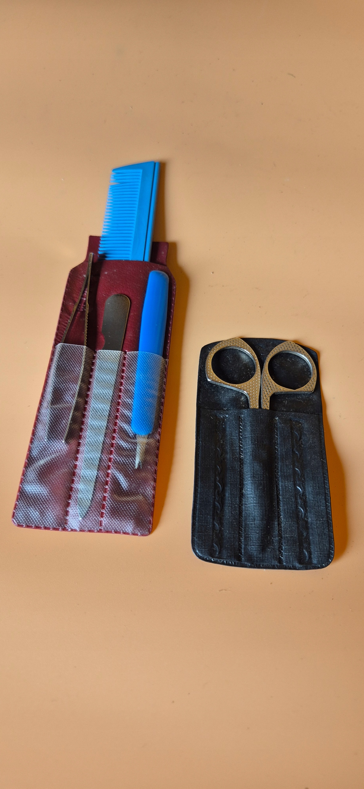 Файл, расческа, ножницы, пинцет в оригинальном случае
