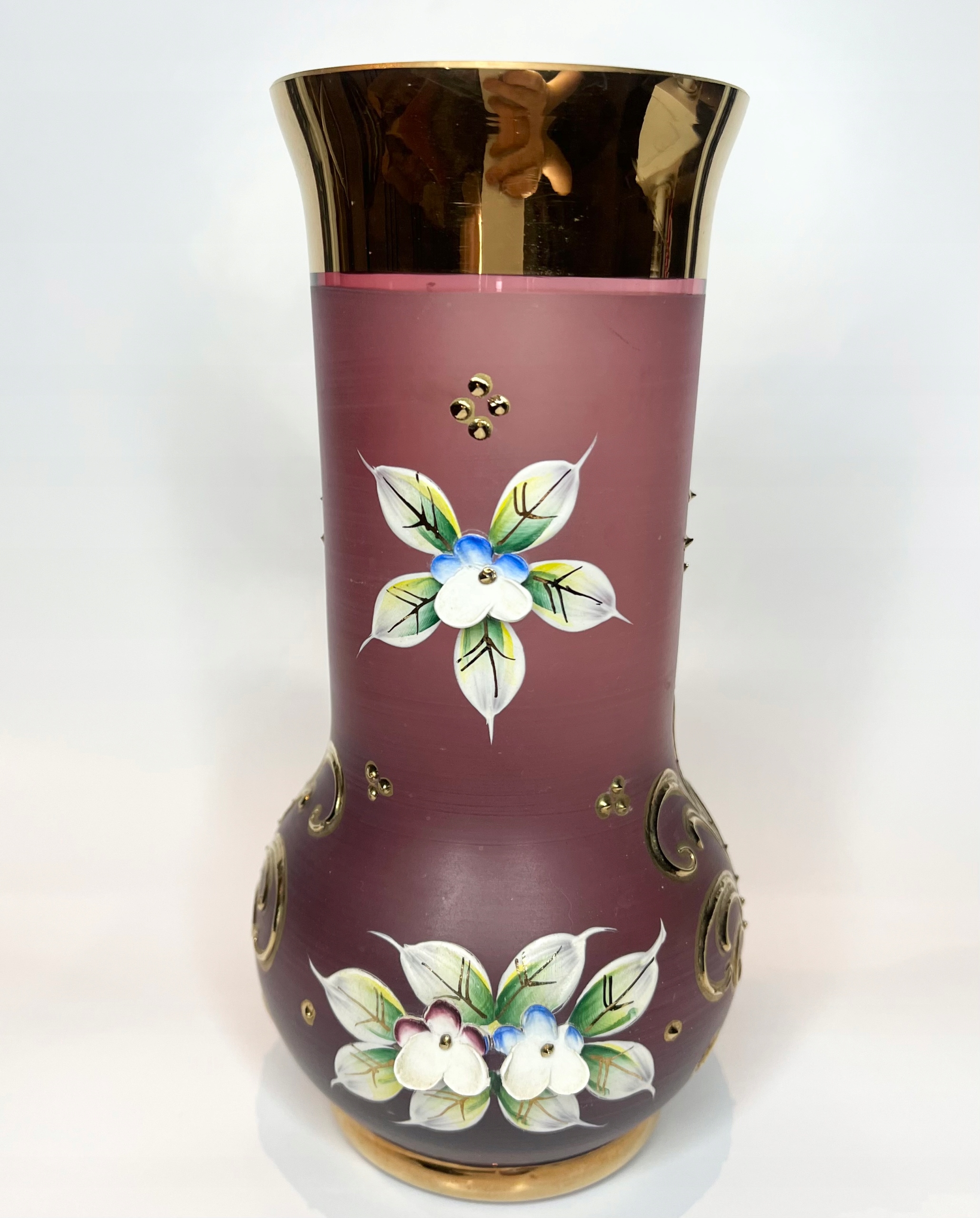 Ваза сочетает в себе элегантность и уникальный дизайн, являясь одним из характерных продуктов чешского производства Novoborské Sklo. Его тонкие украшения в виде золотой краски на отшлифованном краю придают ему классическое очарование, но также требуют осторожности при использовании их оригинального внешнего вида.