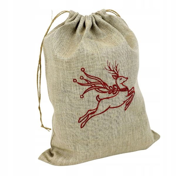 В нашем наборе вы найдете три льняных подарочных пакета, каждый из которых украшен своим рождественским мотивом: