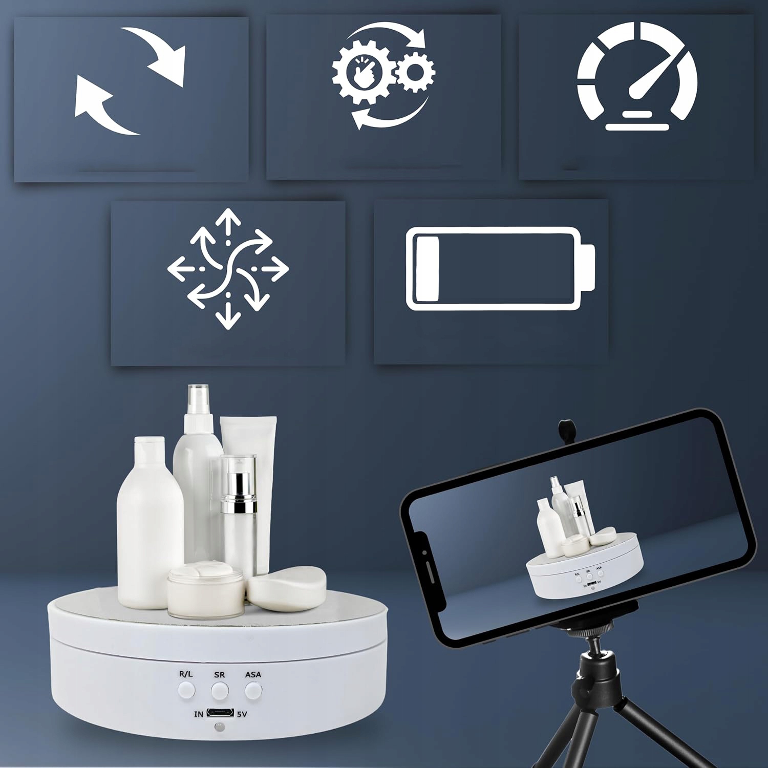 ➡ Идеальный выбор: Стенд роторного дисплея, максимальный вес: 3 кг, идеально подходит для фотографий, ювелирных изделий, электроники, часов, ожерелий и т. Д.