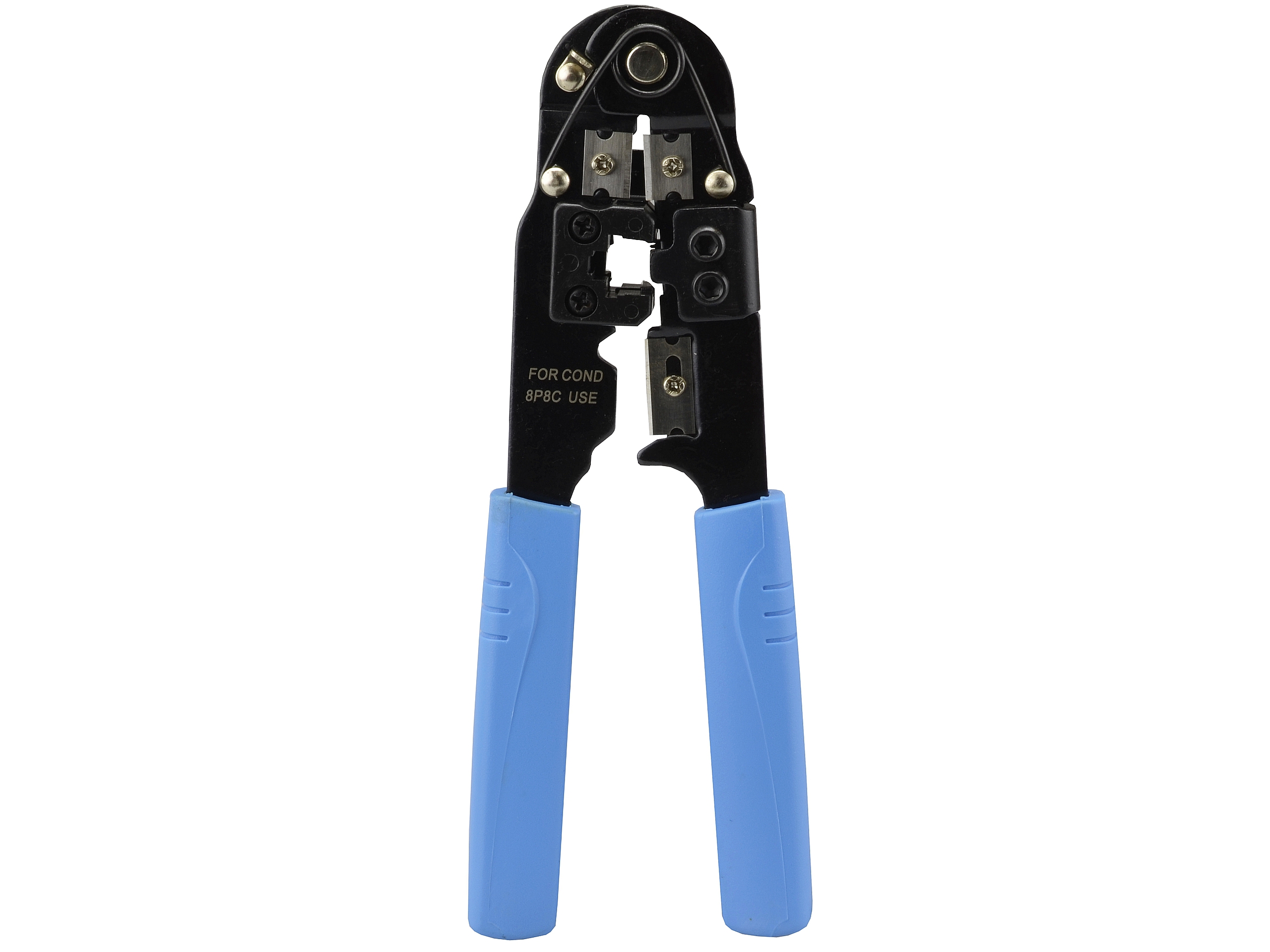 Профессиональный модульный кримпер для обжима 8-контактных вилок на кабеле. Изготовлен из высококачественных материалов (закаленная сталь), гарантирует долгий срок службы и комфорт работы. Обжимной станок также оснащен резаком и съемником изоляции для плоских кабелей.