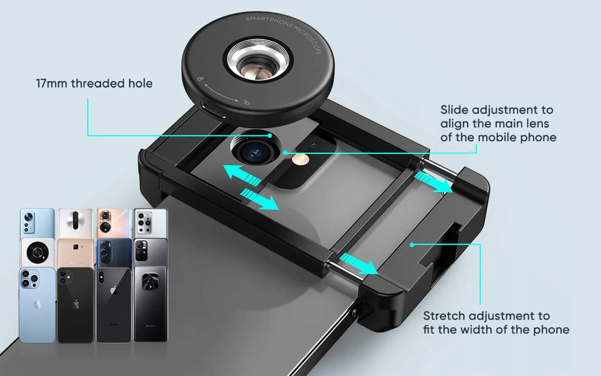 - Высокая совместимость- Микроскоп крепится на универсальный зажим, который подходит практически ко всем смартфонам, таким как iPhone, Samsung, Galaxy, Pixel. , HUAWEI, Redmi, Oneplus и т. д.