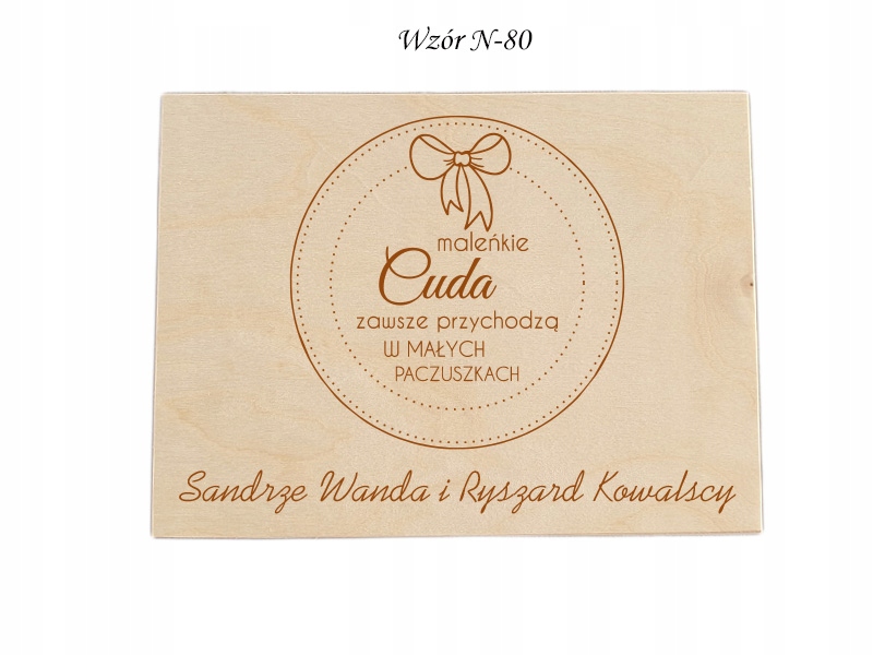 Закрытый деревянный ящик с отделениями и гравировкой, наполненный древесной шерстью и специальными пластинами. Деревянная шкатулка идеально подходит в качестве незаменимого подарка для детского душа, который можно подарить будущей маме. Простая форма дополнена персонализированной гравировкой на крышке и пожеланиями внутри коробки. Шкатулка из натурального дерева состоит из пяти отделений, в которых находятся круглые купюры с посвящением. Выбрав любые 5 билетов из списка ниже, вы сможете укомплектовать комплект по своему вкусу.