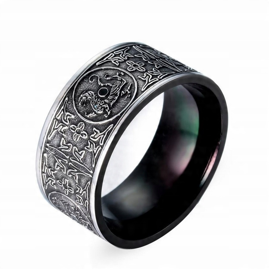 ОБРУЧАЛЬНОЕ КОЛЬЦО МУЖСКАЯ ПЕРСТЕНЬ ДРАКОН ДРАКОН СТАЛЬ 316L РОЗ 22