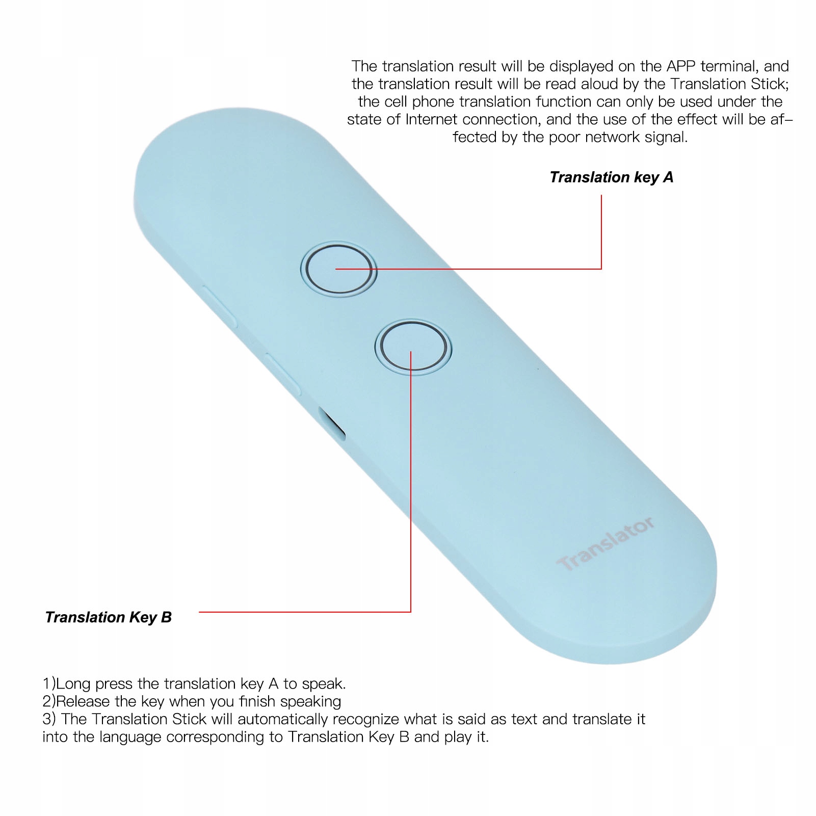 2. Высокая точность: Перевод голоса Stick использует расширенный алгоритм перевода и технологию искусственного интеллекта, чтобы обеспечить точность перевода более 95%.