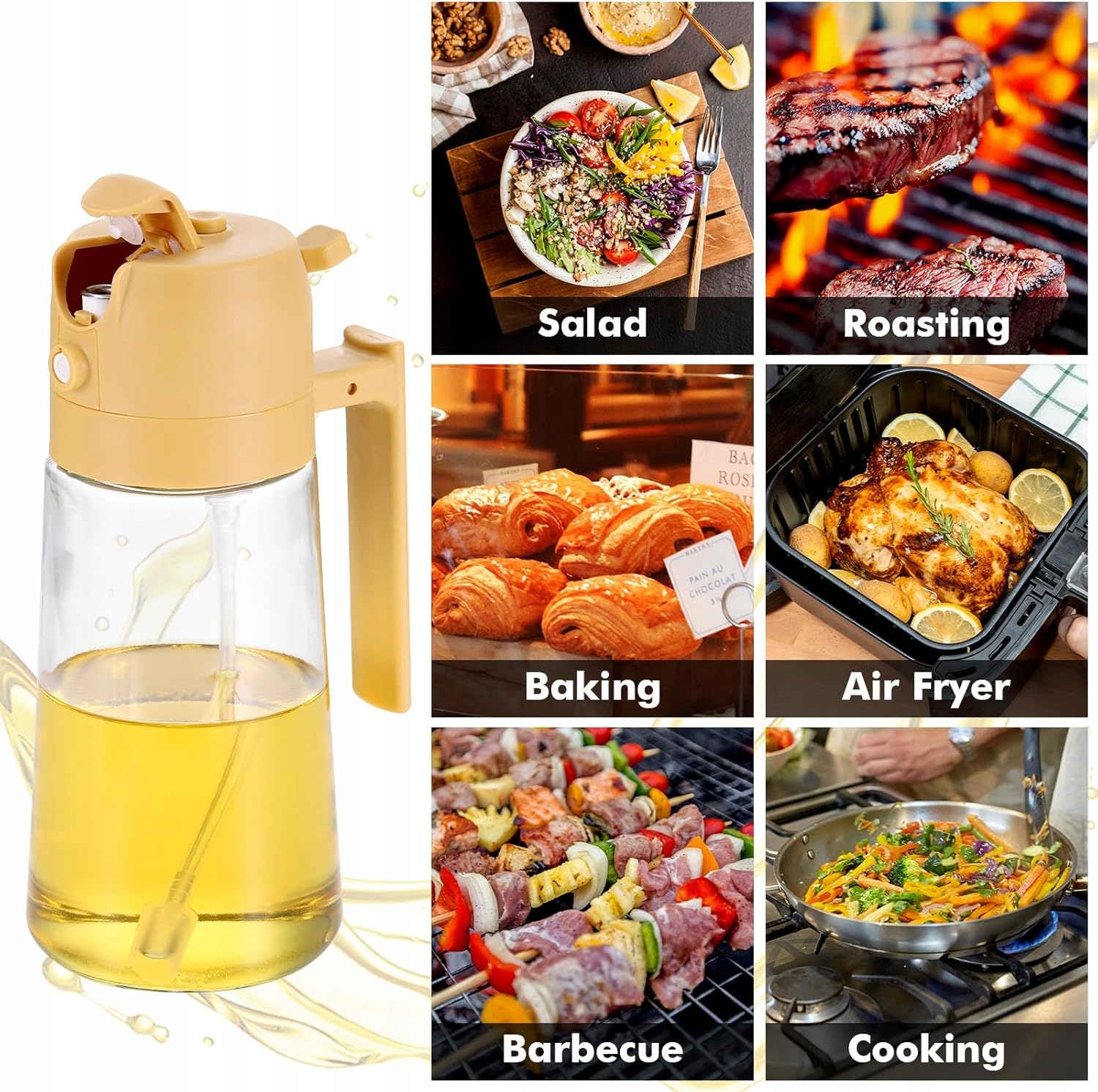 Благодаря инновационному дизайну 2-в-1 вы можете как дозировать, так и масло для распыления. Это универсальное решение упрощает приготовление блюд и позволяет контролировать количество используемого жира.