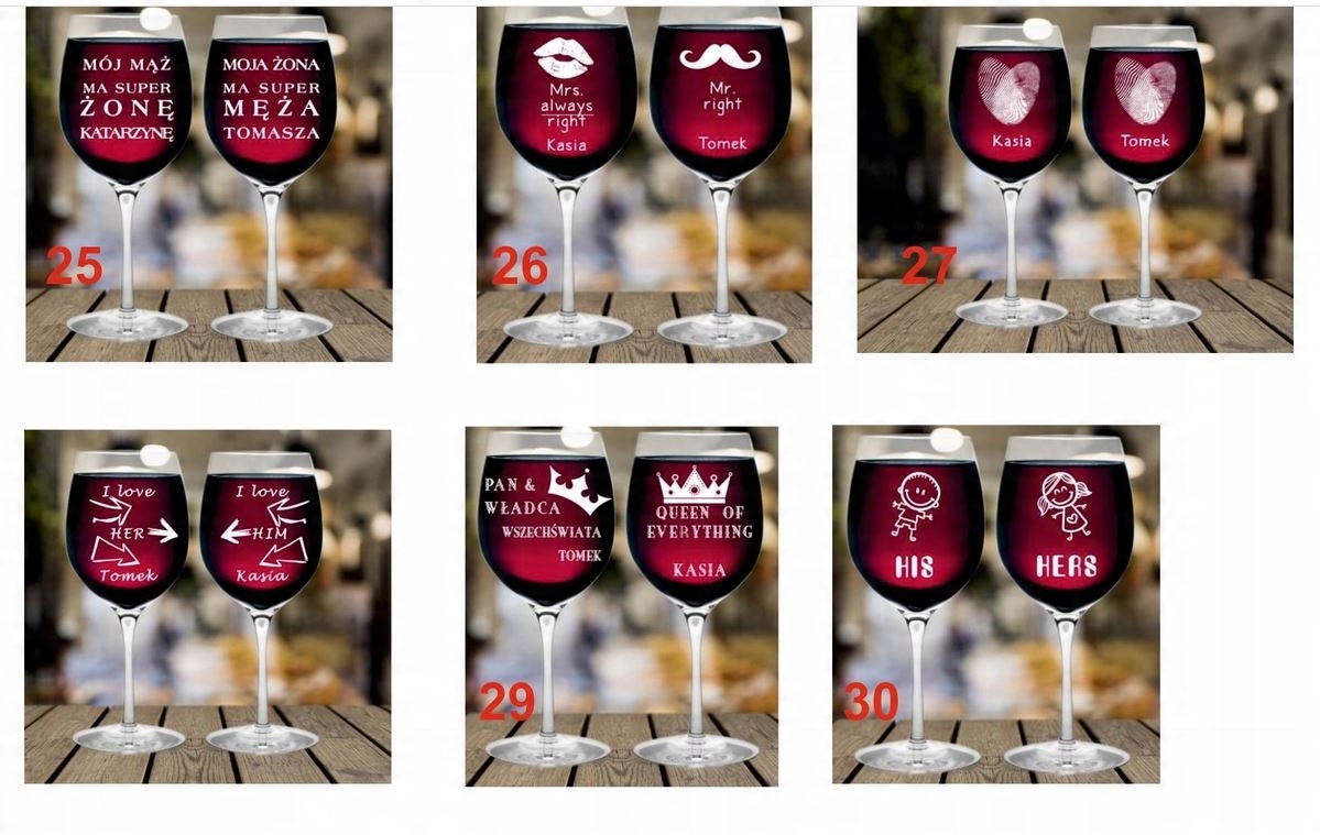 - данные для печати на коробке и гравировки на очках(текст можем изменить на любой, например узор 16 с надписью Дорогая мама, Кася и Михал, спасибо и т.д.)