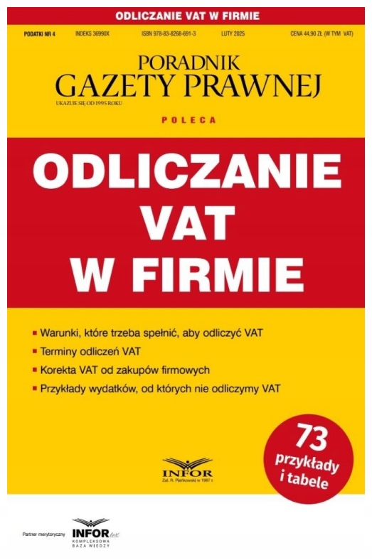 Компания вычитала НДС в компании, всесторонне обсуждает принципы учета налога на входные расходы на расходы компании. Было легко объяснить, какие условия должны быть выполнены, чтобы воспользоваться вычетом, и в какое время это может быть сделано. Принципы коррекции счищенного НДС в связи с полученным счетом или изменением в целях приобретенных товаров также были представлены. Примеры обсуждались, какие расходы могут быть поставлены под сомнение налоговыми органами. Публикация сопровождается контрольным списком для вычета НДС, чтобы они могли быстро проверить, будут ли они вычесть НД из полученного счета. Читатель будет учиться на публикации, среди прочего: какие условия должны быть удовлетворены, чтобы воспользоваться вычетом НДС из расходов компании? На какие даты могут вычесть НДС? Как исправить сделанные вычеты НДС? Какие расходы не могут вычесть НДС? Руководство объясняет проблемные проблемы, связанные с вычтением налога на вход во многих конкретных ситуациях, включая расходы, связанные с легковыми автомобилями. Преимущество исследования - прозрачное расположение подробных вопросов. Кроме того, объяснения и советы по отдельным проблемам сопровождаются практическими примерами, иллюстрирующими ключевые проблемы. Благодаря многочисленным, практическим примерам и текущим толкованию налоговых органов и судебного дела, публикация является поддержкой налогоплательщиков НДС, а также для специалистов в области бухгалтерского учета и в Управлении бухгалтерского учета