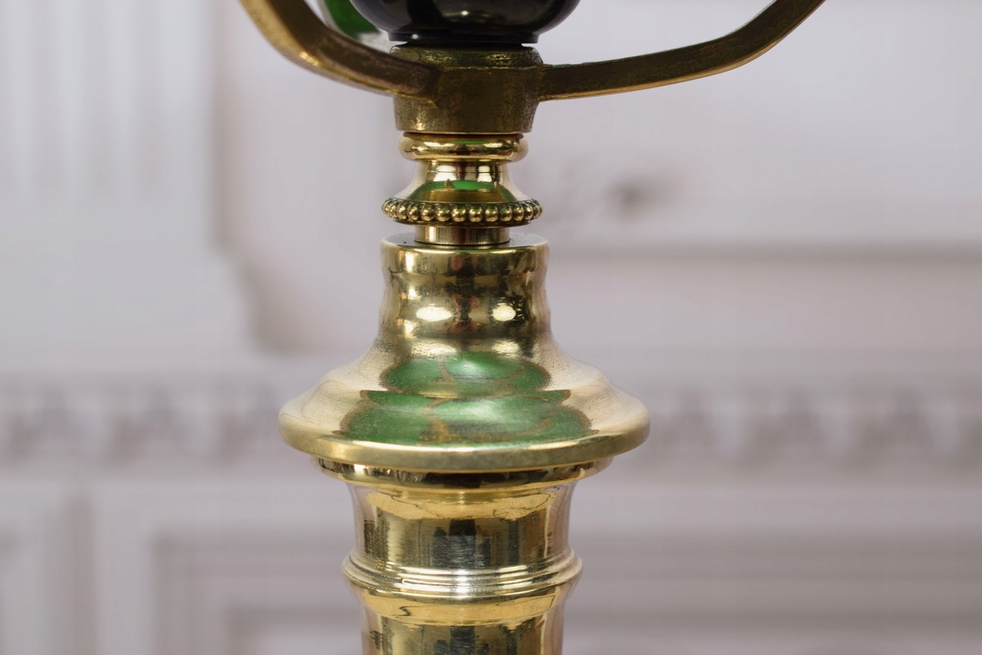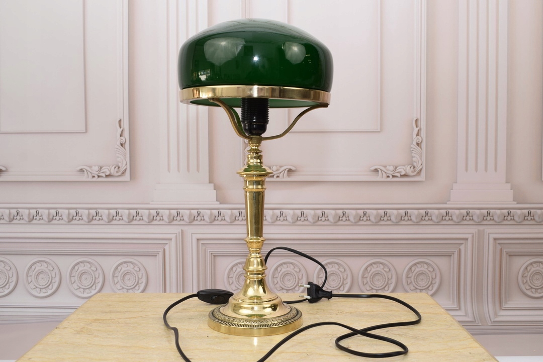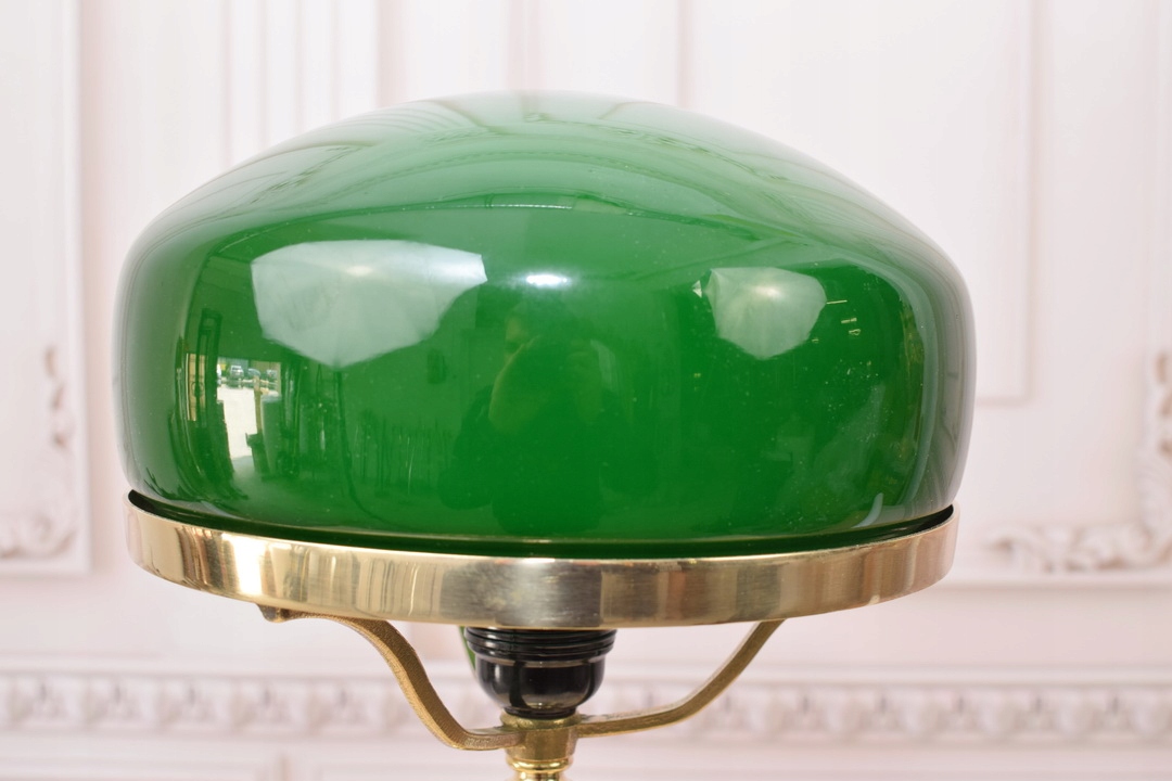Классическая латунная офисная лампа с оранжевым абажуром, называемая нотариальной или банкирской лампой!