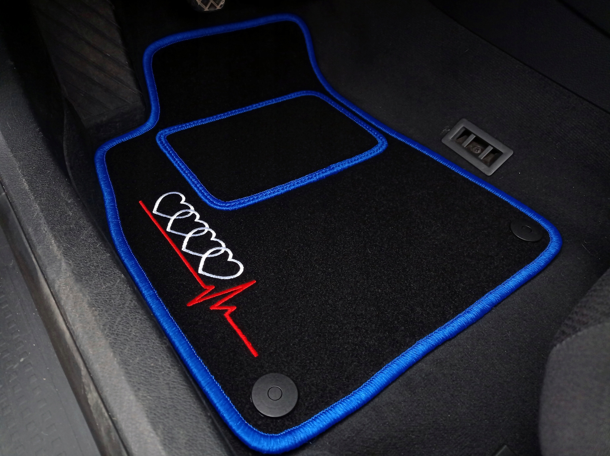 Ниже представлены велюровые коврики в версии «СТАНДАРТ» с уникальной вышивкой плотностью 1750 г/м2, толщиной около 0,5 см, сшитые из прочной и долговечной пряжи синего цвета. Коврики тщательно разработаны и изготовлены компанией LASOTA и адаптированы к форме пола вашего автомобиля. Нижняя часть ковриков покрыта слоем грубой резины, чтобы они не намокали и не смещались. К водительскому коврику пришито усиление, чтобы коврик не изнашивался быстрее.