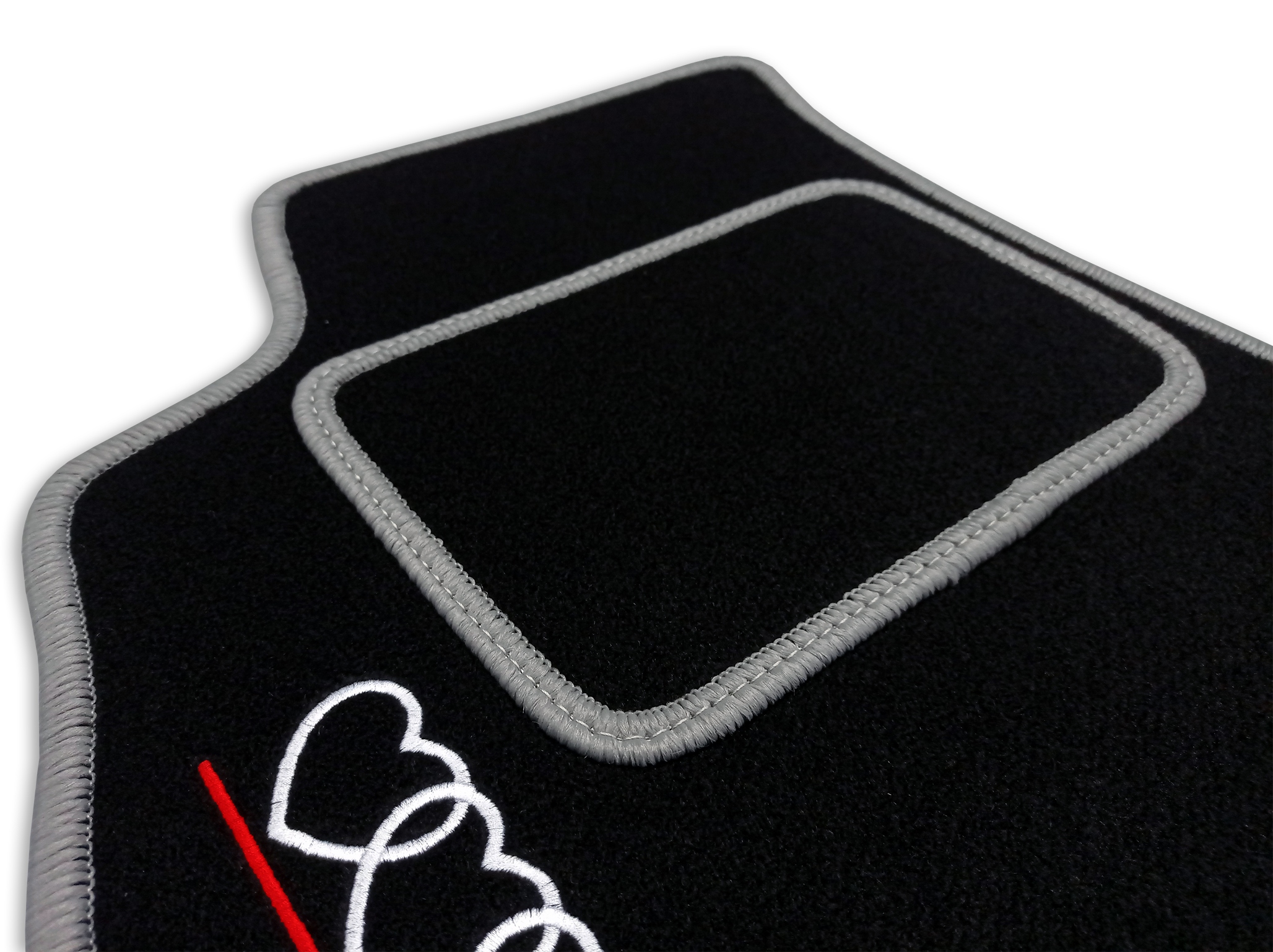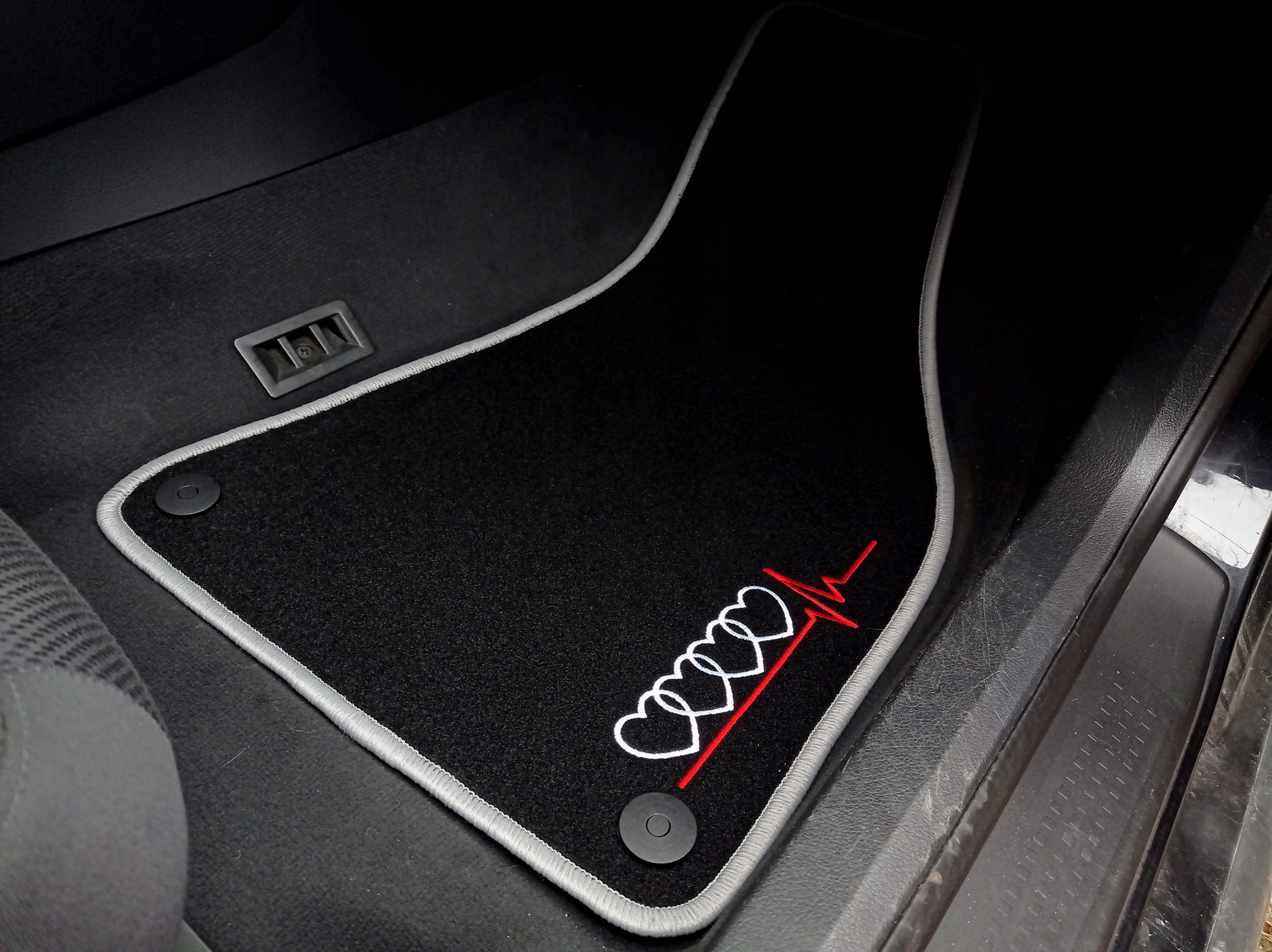 Ниже представлены бархатные коврики в варианте «СТАНДАРТ» с уникальной вышивкой, плотностью 1750 г/м2, толщиной около 0,5 см, с отделкой прочной и долговечной пряжей светло-серого цвета. Коврики тщательно разработаны и изготовлены компанией LASOTA и адаптированы к форме пола вашего автомобиля. Нижняя часть ковриков покрыта слоем грубой резины, чтобы они не намокали и не смещались. К водительскому коврику пришито усиление, чтобы коврик не изнашивался быстрее.