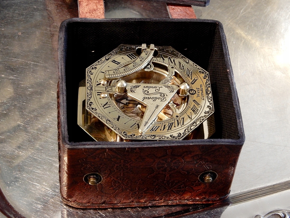 медный компас с солнечными часами в кожаном корпусе - это уникальный декоративный объект, а также историческая копия, предназначенная для моряков, капитанов, руководителей, путешественников и любителей классических навигационных инструментов. Направленный, покрытый стеклянным куполом. Гномон помещается над ним - индикатор, который бросает тень на гравированном щите с римскими почасовыми маркировками. Целое сделано из латуни, с тонкой патиной, которая придает объекту подлинный, исторический характер.