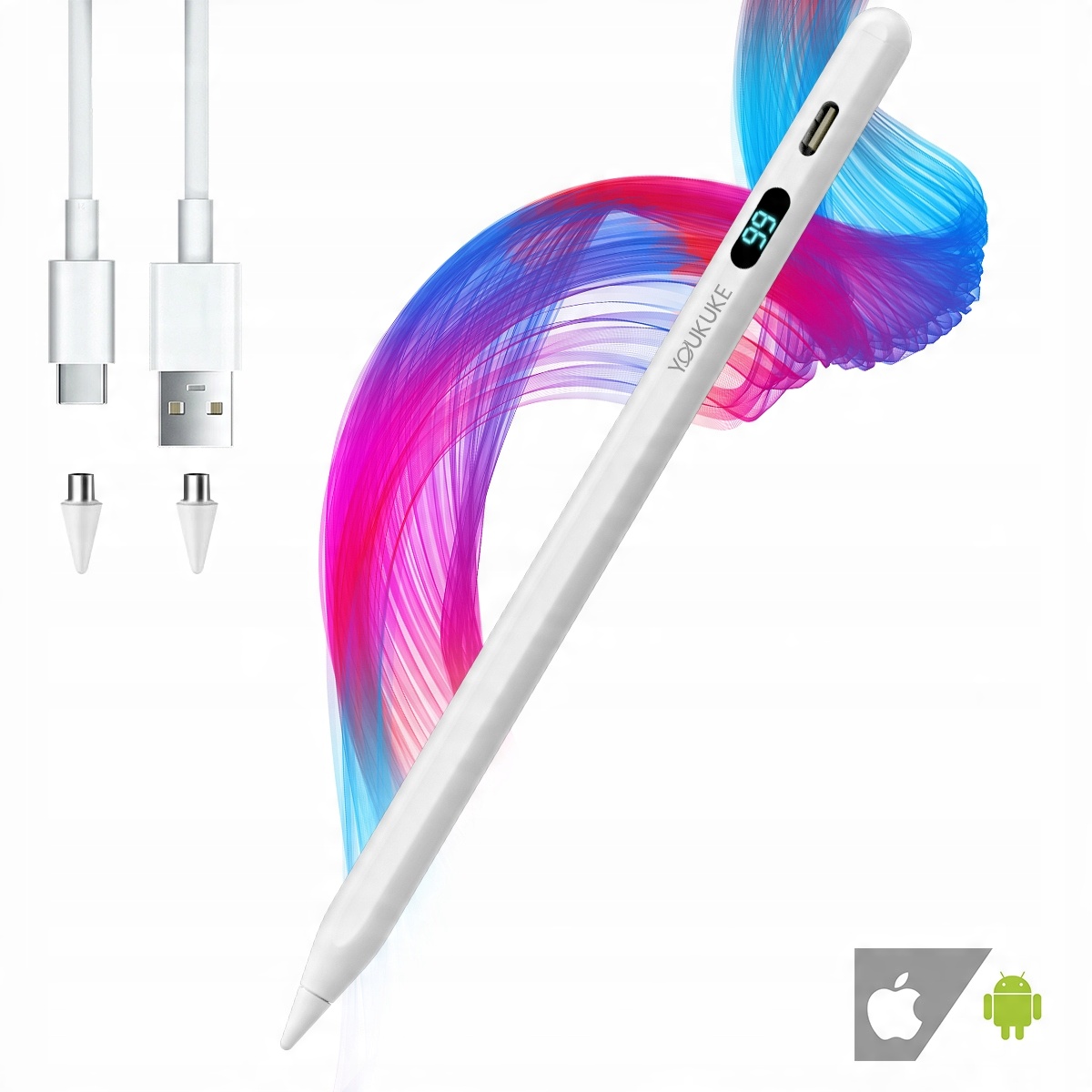 Универсальный активный стилус, белый карандаш для смартфонов Apple iPad / iPhone / Android / Samsung / Lenovo / Huawei / Fire со светодиодным экраном с цифровой индикацией мощности