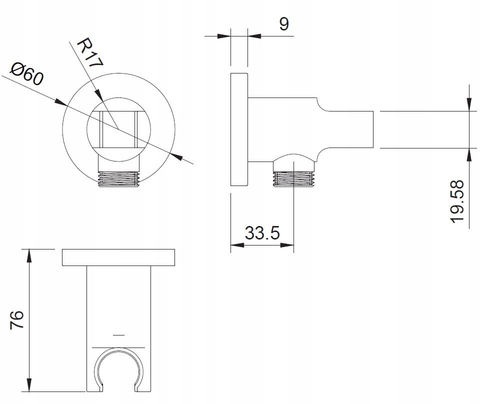 Латунь угловое соединение, с держателем для душа: 8873CR